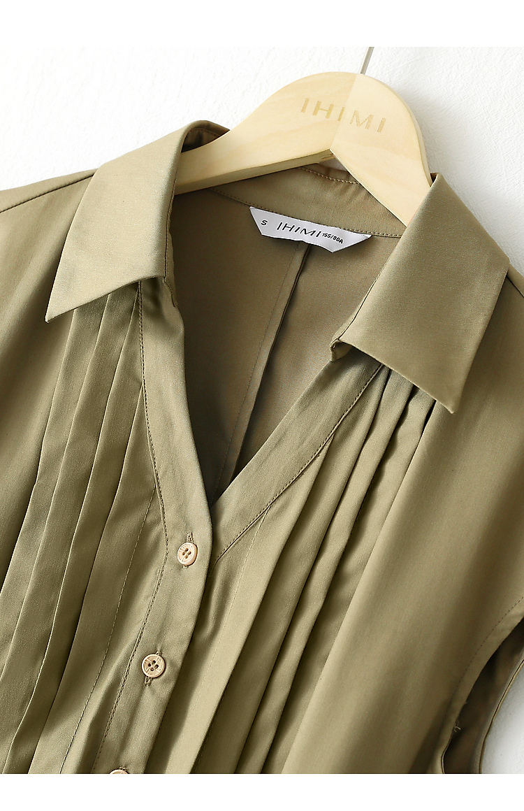 IHIMI海謐設計感V領裙子2023夏季新款女簡約通勤寬松顯瘦連衣裙
