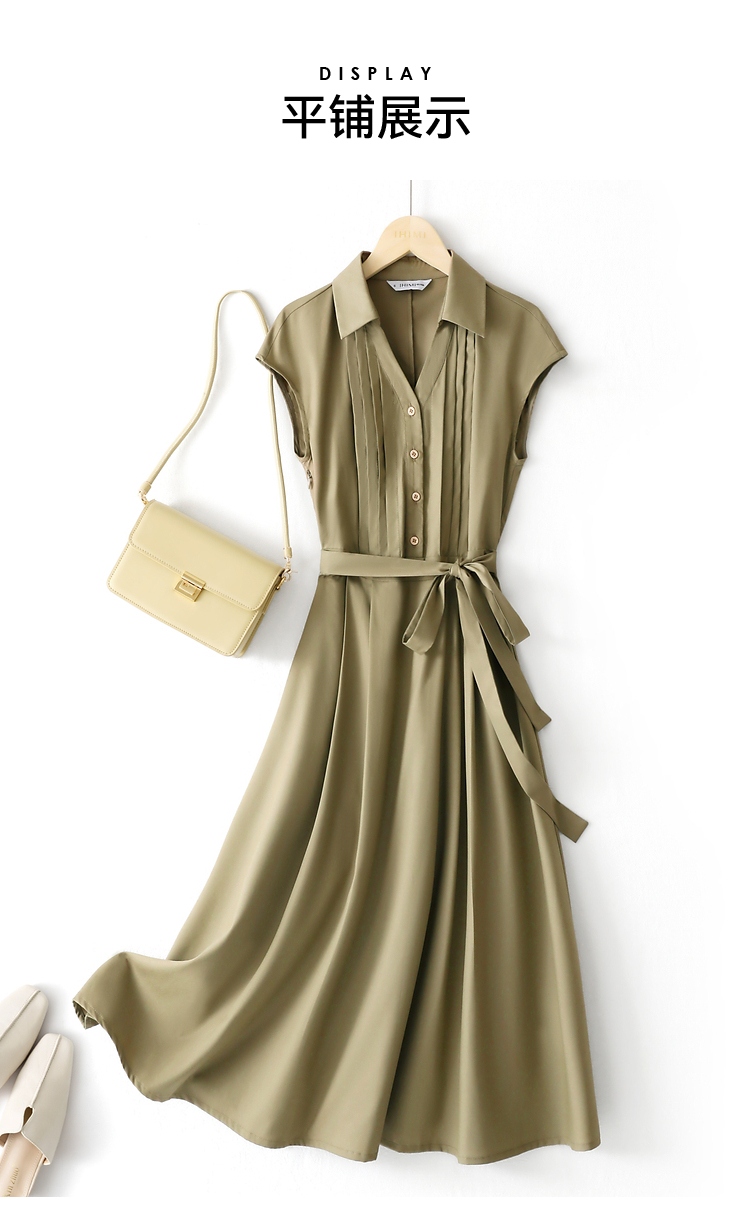 IHIMI海謐天絲V領肌理感裙子2023夏季新款女時尚高級感收腰連衣裙