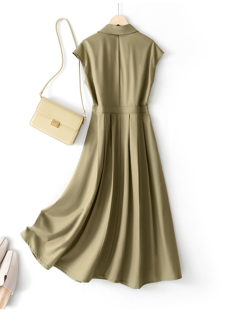 IHIMI海謐高棉polo領連衣裙女2023夏季新款長裙高腰修身顯瘦裙子