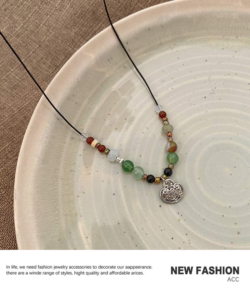 新中式串珠平安鎖項鏈女復古民族風輕奢鎖骨鏈國潮頸鏈小眾設計感
