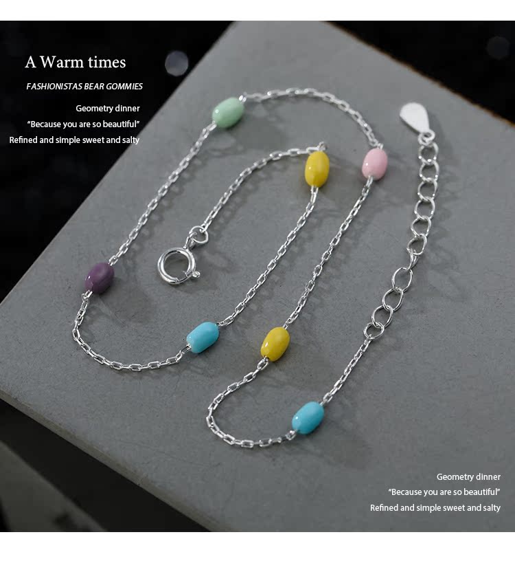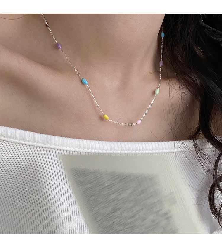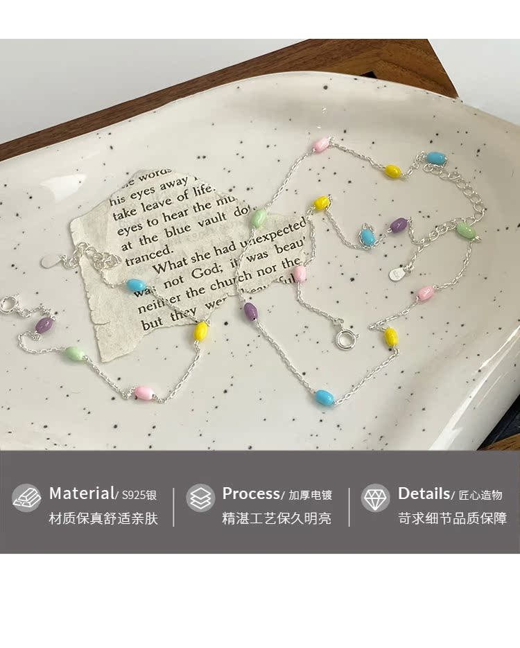 Z小姐 莫蘭迪彩豆 925純銀 項鏈 長約39.5+3.5cm 重約1.84克