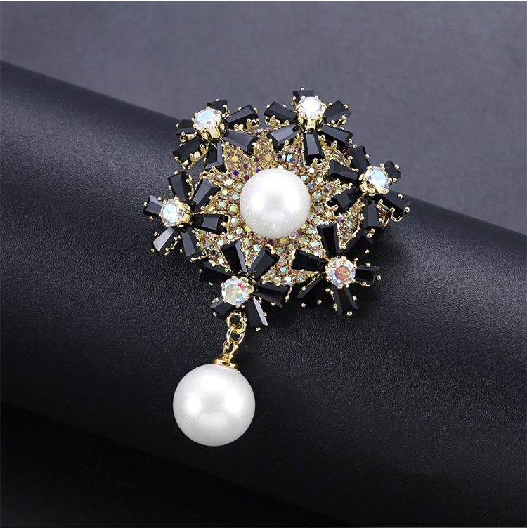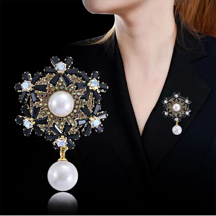 小巧高檔奢華胸花時來運轉三層雪花款鋯石胸針配飾防走光扣領別針