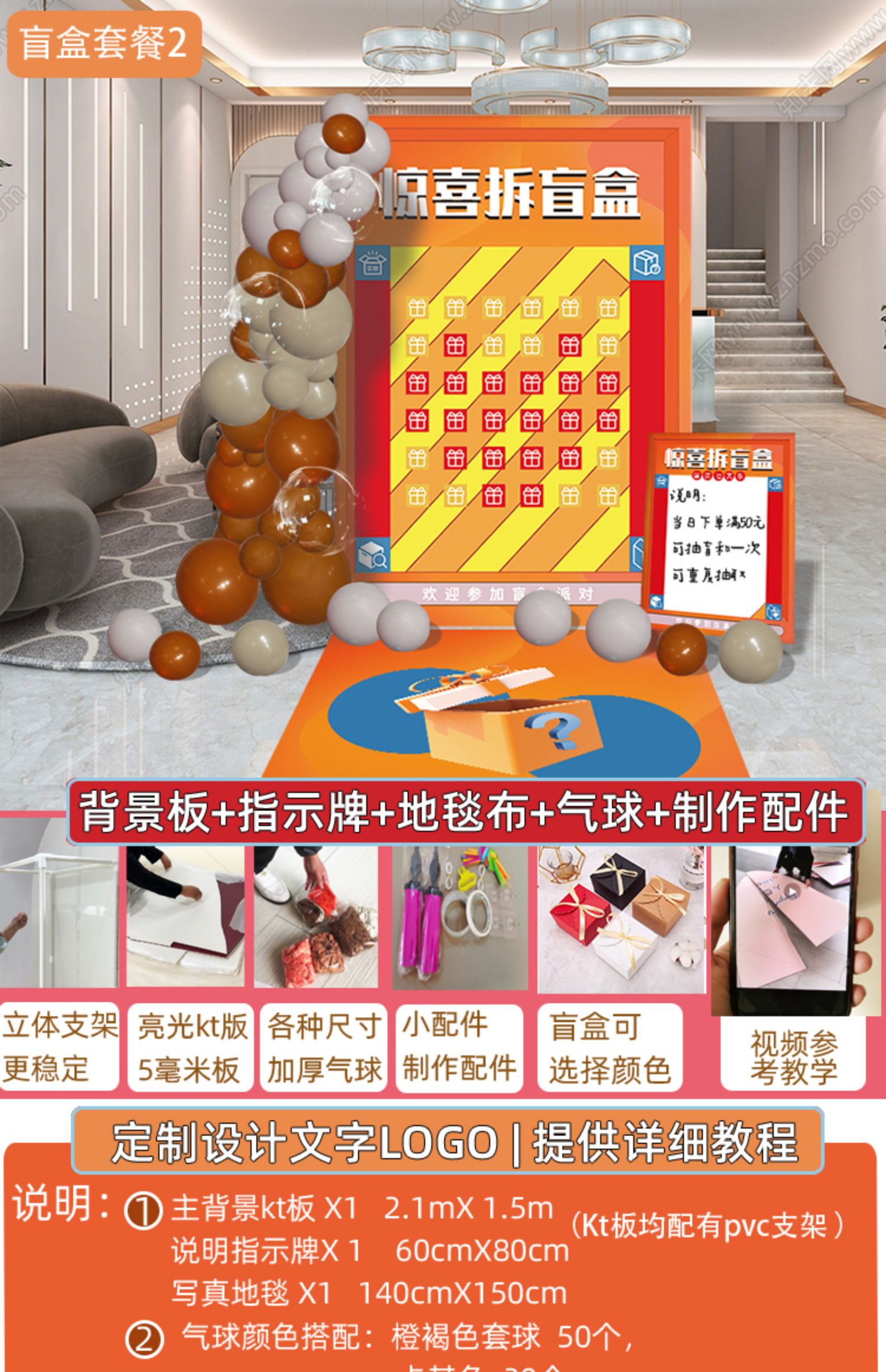 抽獎紅包墻背景創意盲盒KT板氣球場景布置開業周年美容院國慶活動