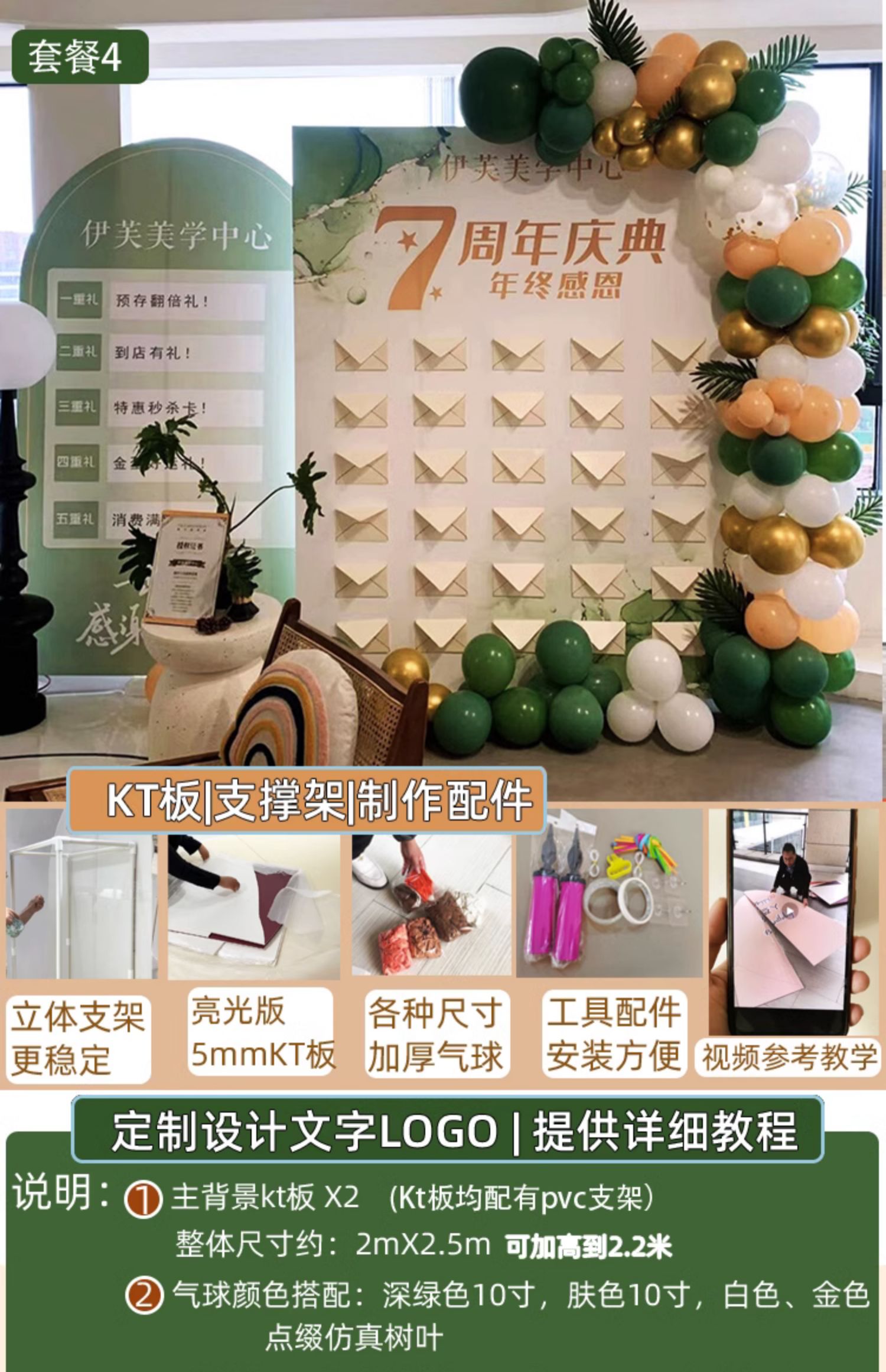 開業氣氛場景布置瑜伽美容周年慶活動裝飾kt板定制氣球背景簽名墻