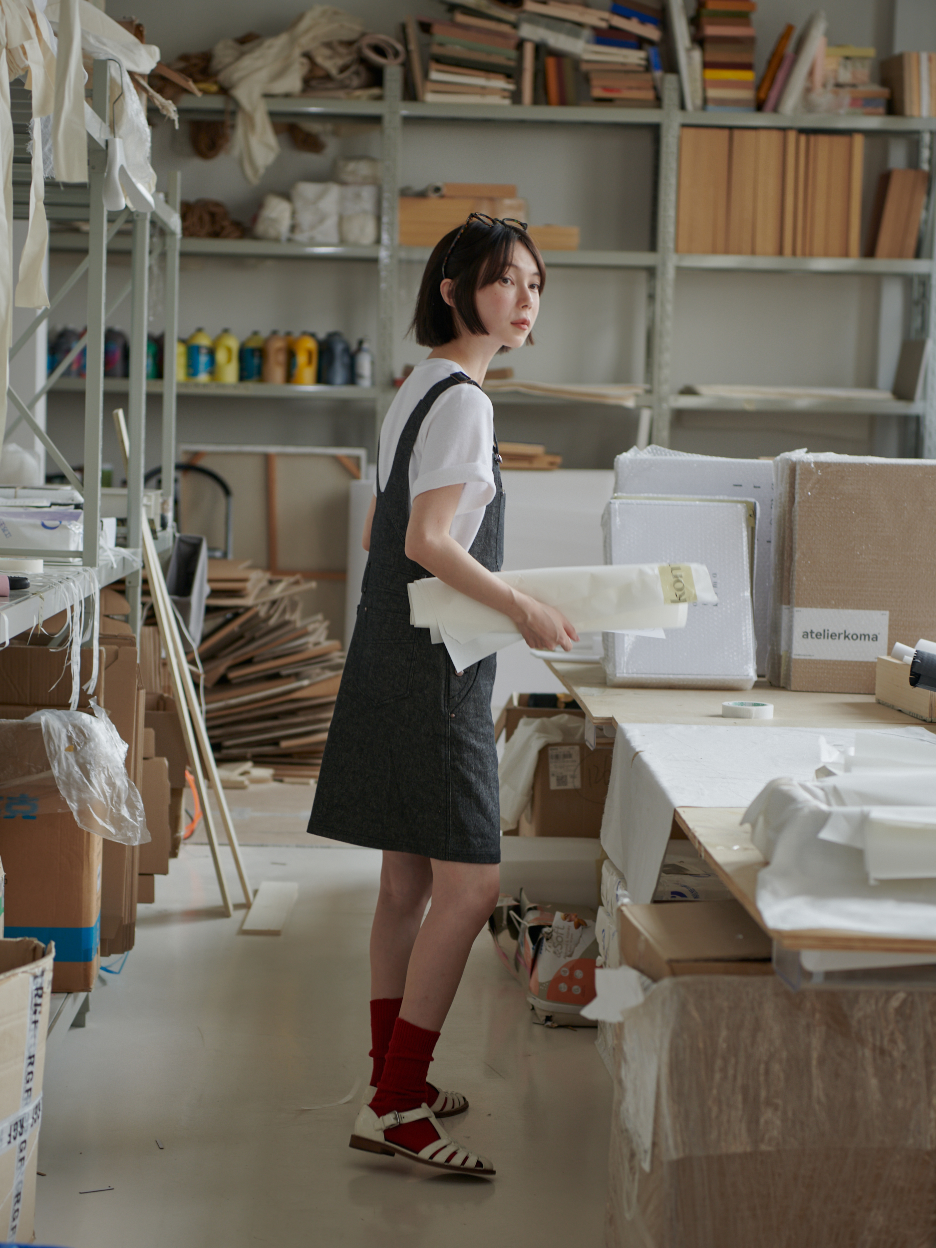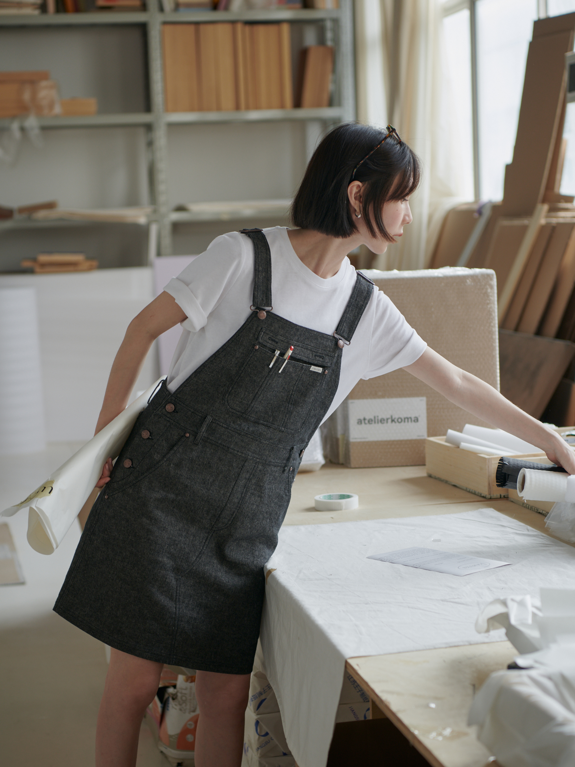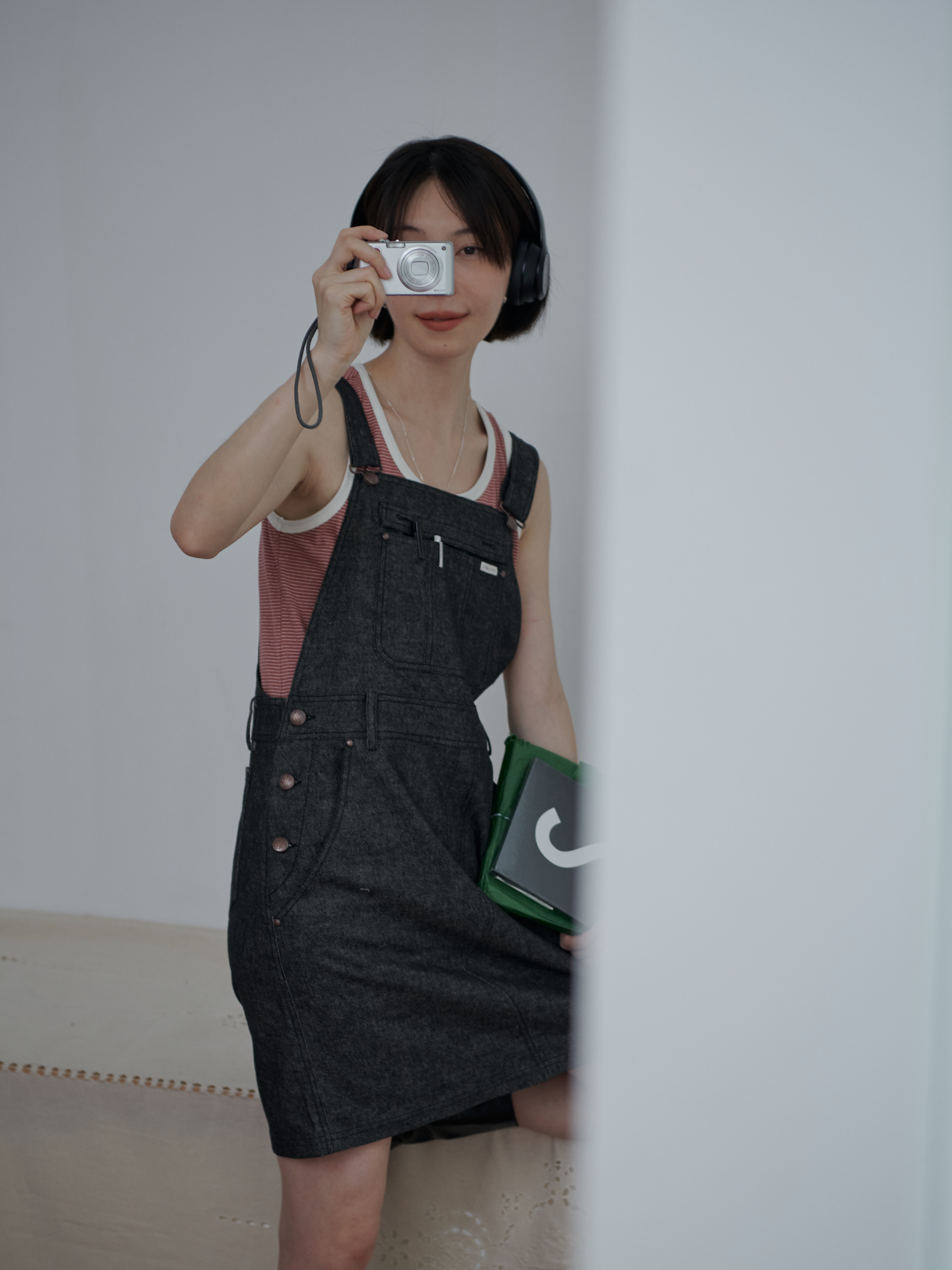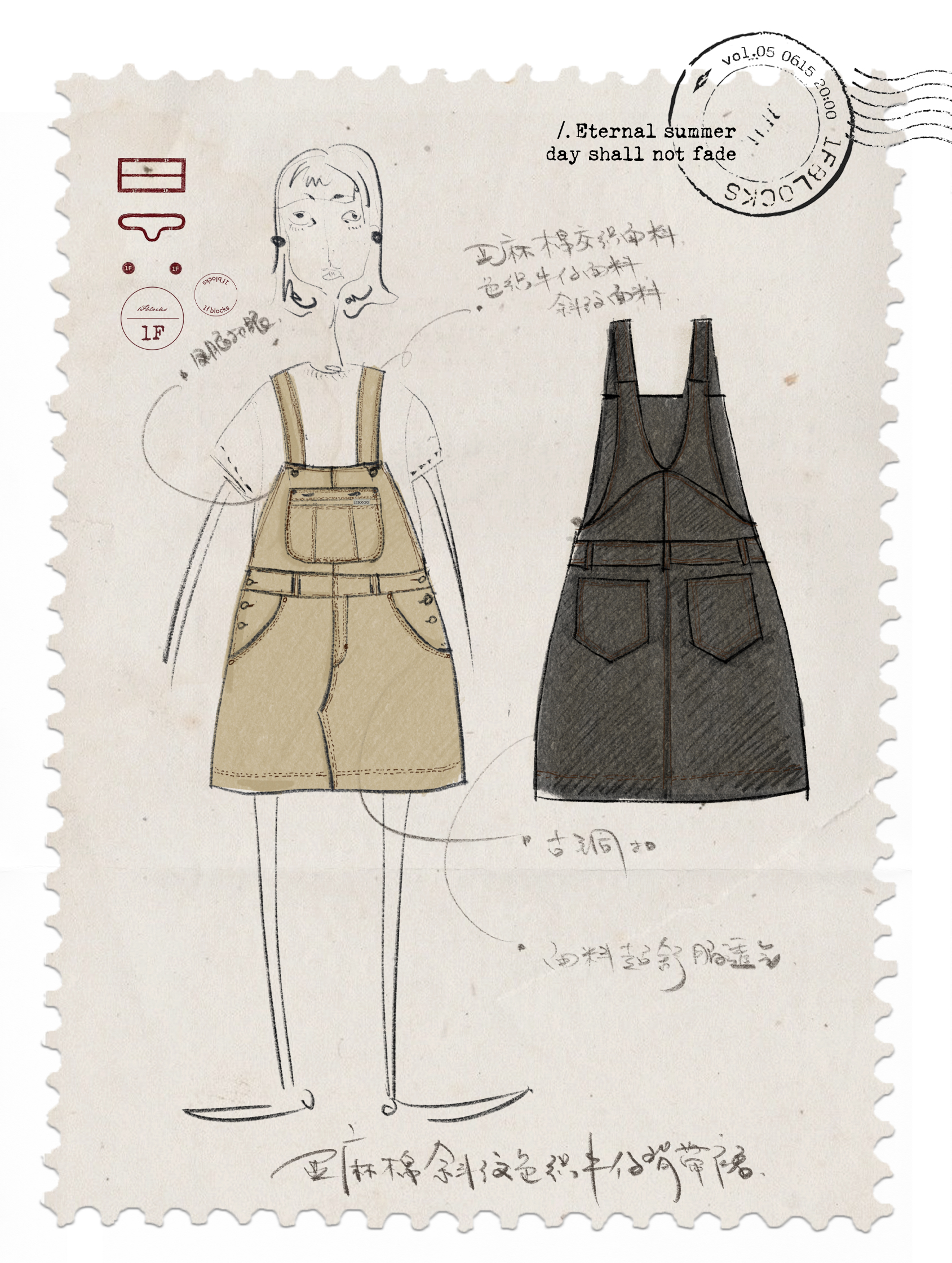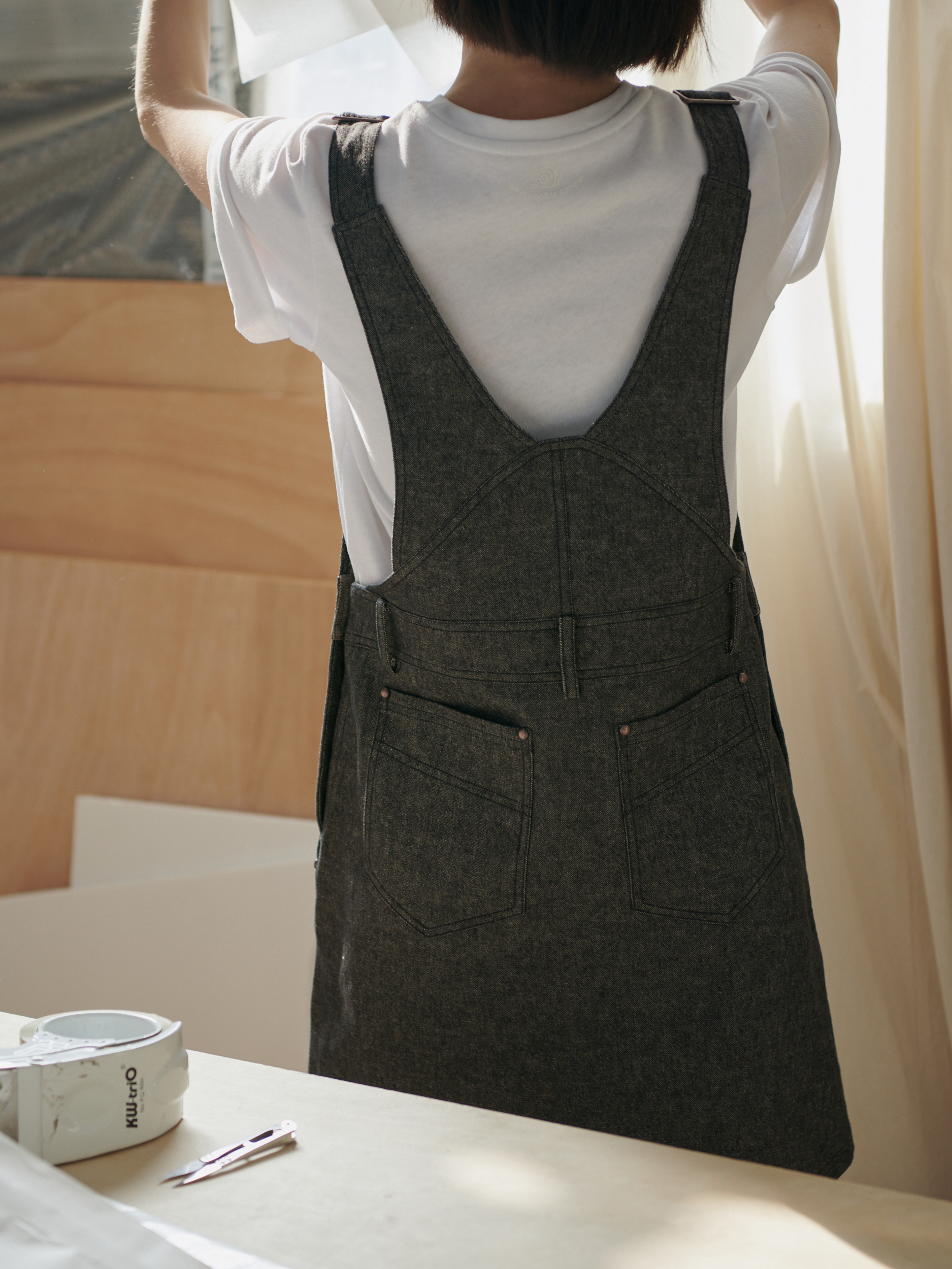 一方二集 美式復古元氣工裝亞麻棉色織牛仔背帶短裙