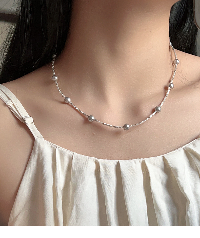 925純銀碎銀幾兩珍珠項鏈女款2023新款碎銀子鎖骨鏈高級輕奢頸鏈