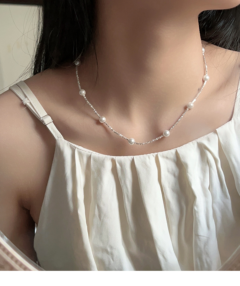 滿天星施家珍珠S925純銀碎銀子鎖骨鏈女輕奢項鏈2023年新款頸鏈