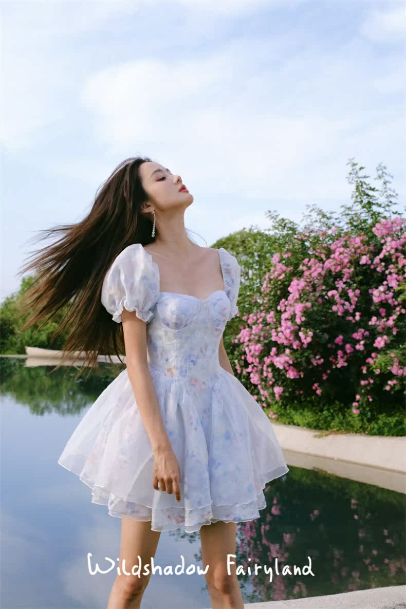 WILDSHADOW 官方授權 2023春夏新款花紫色多層蓬蓬公主裙