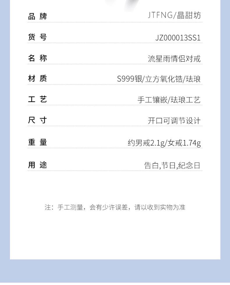 17¥ CZ3457 cI5xWbBA21V¥ https://m.tb.cn/h.5hbNEBk 流星雨S999純銀情侶戒指男女一對情侶款對戒小眾設計刻字紀念禮物 --------------------- 流星雨S999純銀情侶戒指男女一對情侶款對戒小眾設計刻字紀念禮物 --------------------- 【原售價】86.33元 【優惠券】5元 【券后價】81.33元。