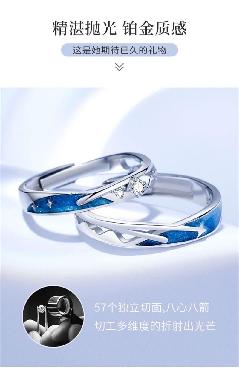 流星雨S999純銀情侶戒指男女一對情侶款對戒小眾設計刻字紀念禮物
