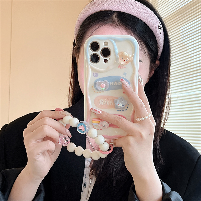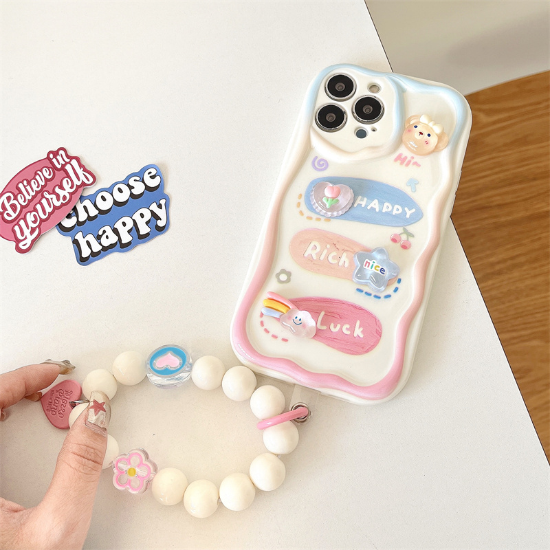 適用vivoX90手機殼女x80/70/x60/50/30/27波浪紋vivoS16全包防摔15/12/10/9/7e手環y77/y52s立體彩虹小熊小兔