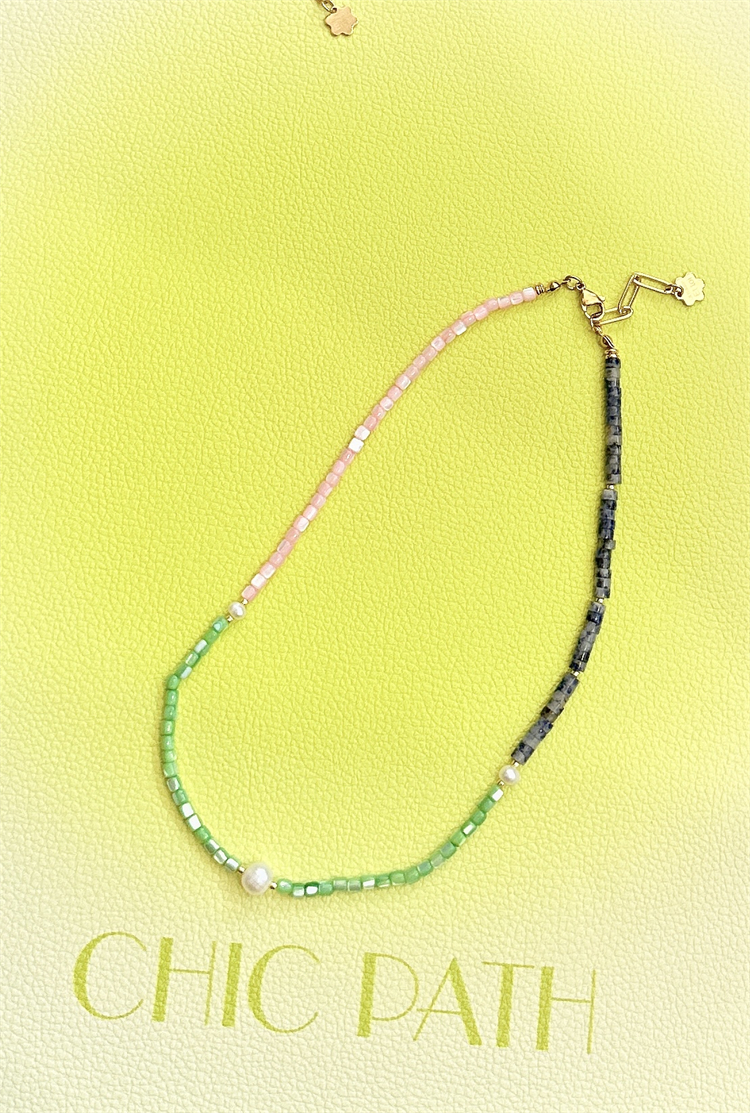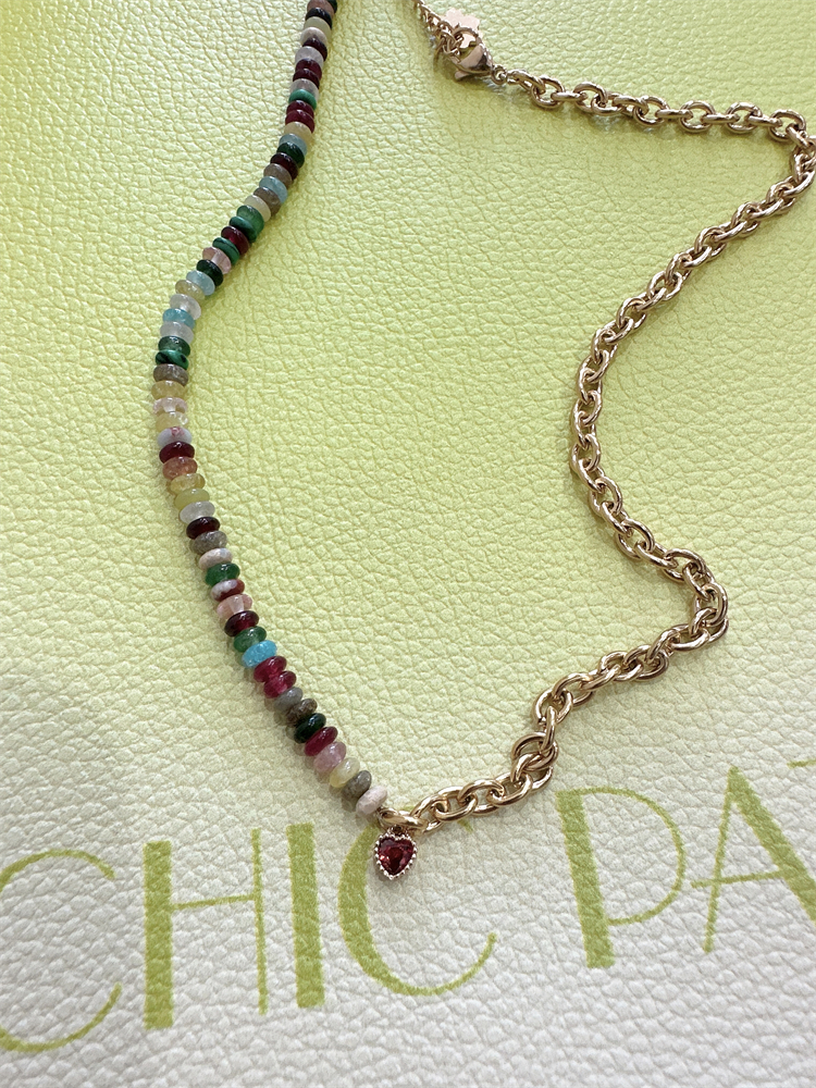 et toi Viki彩色串珠項鏈愛心吊墜頸鏈小眾輕著高級感多巴胺女款