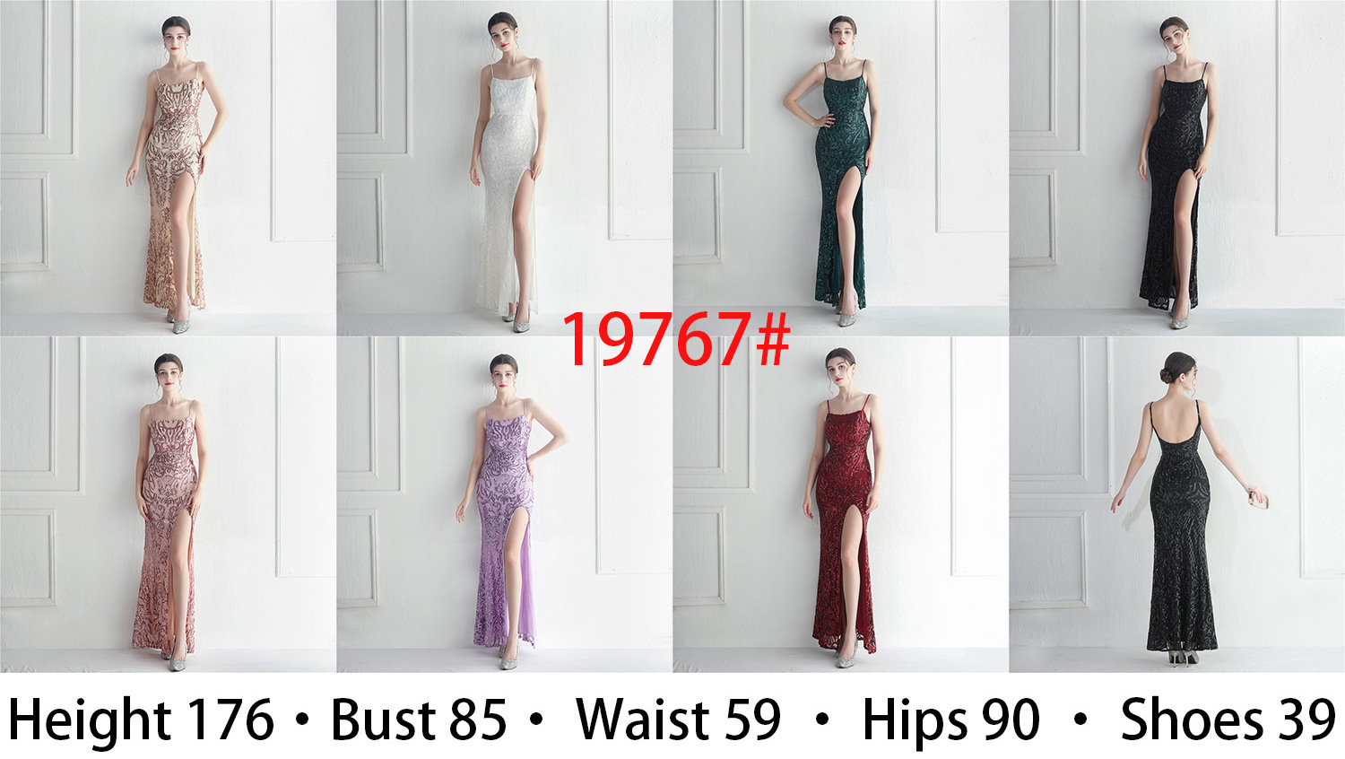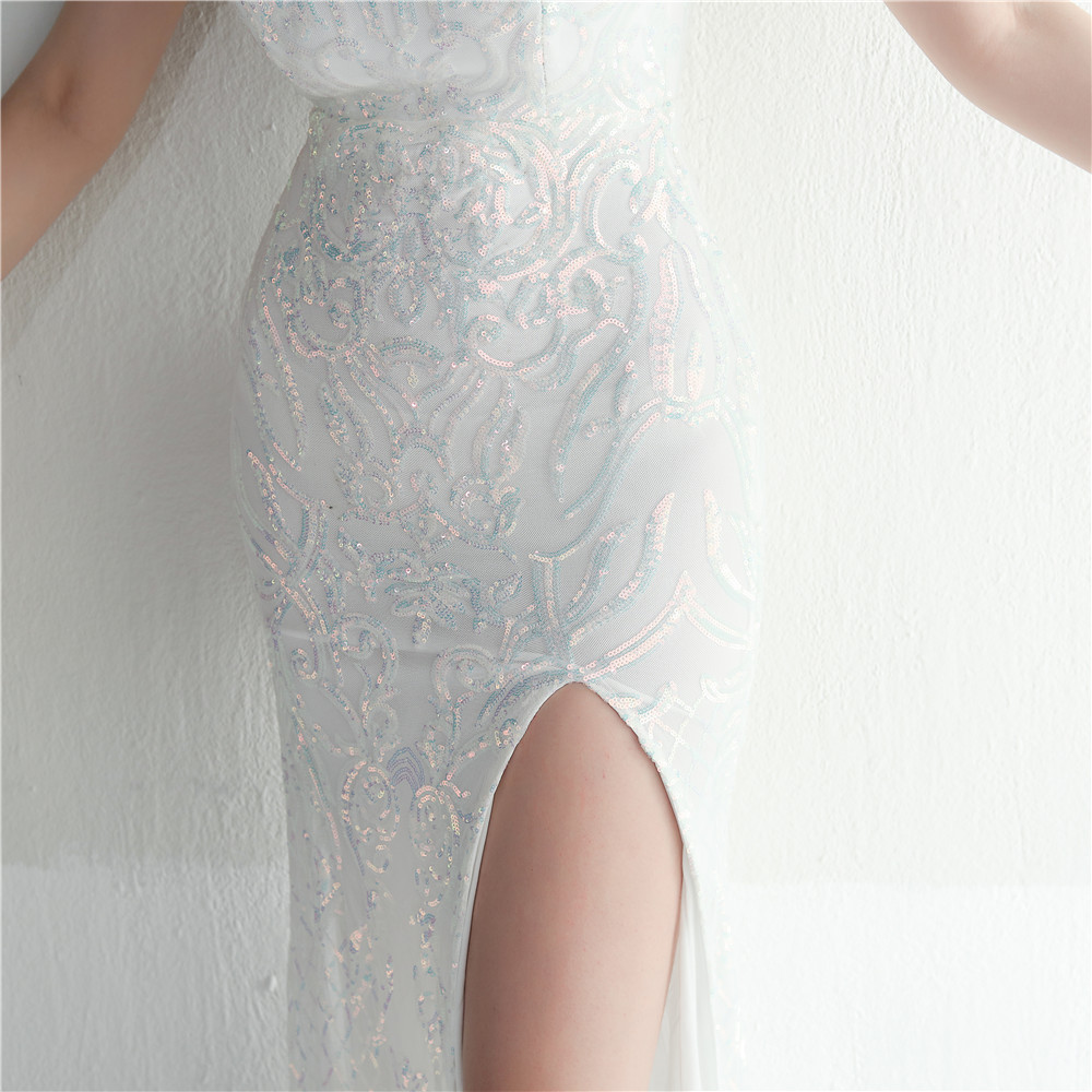 晚禮服裙女主持人亮閃一字領開叉伴娘頒獎禮儀活動慶典長款連衣裙