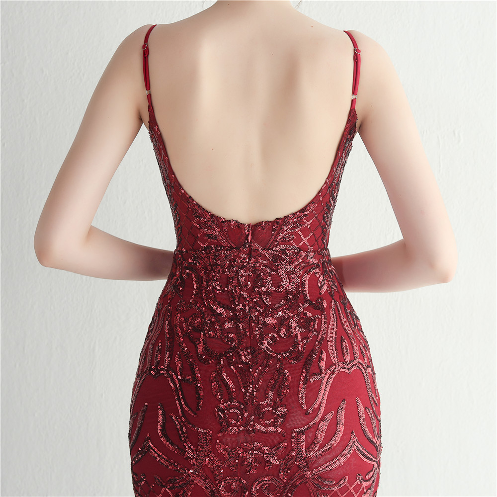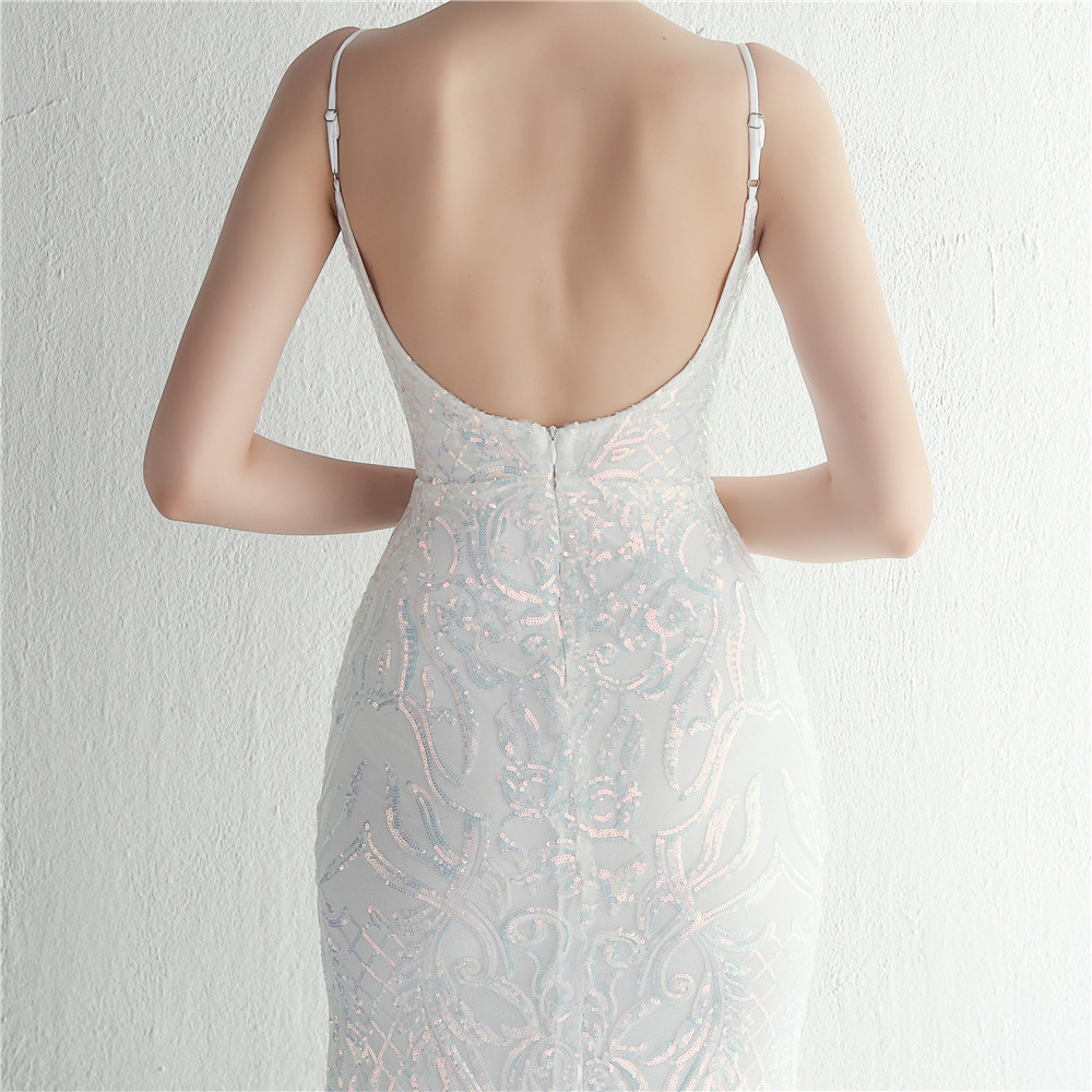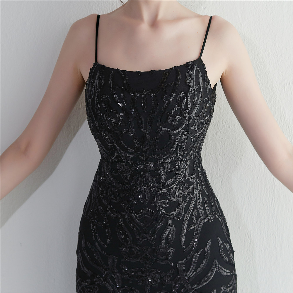 小眾手工珠片單肩吊帶名媛魚尾裙
