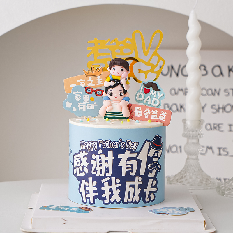 2023父親節感謝有你圍邊蛋糕裝品騎肩父子擺件亞克力老爸最帥插件