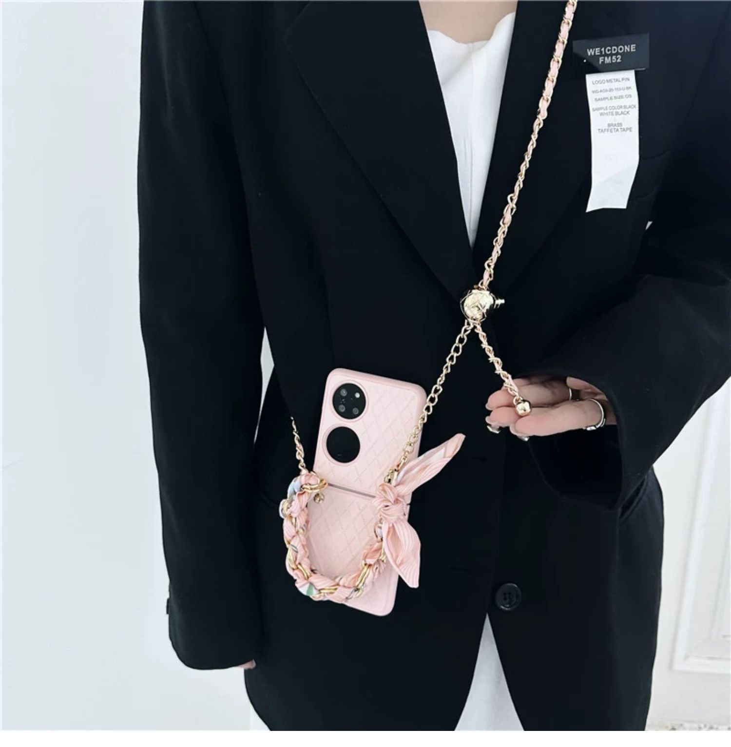適用于華為p50pocket手機殼新款絲巾手提寶盒折疊屏保護套pockets可調節斜挎掛繩限量版殼粉色小香風女時尚