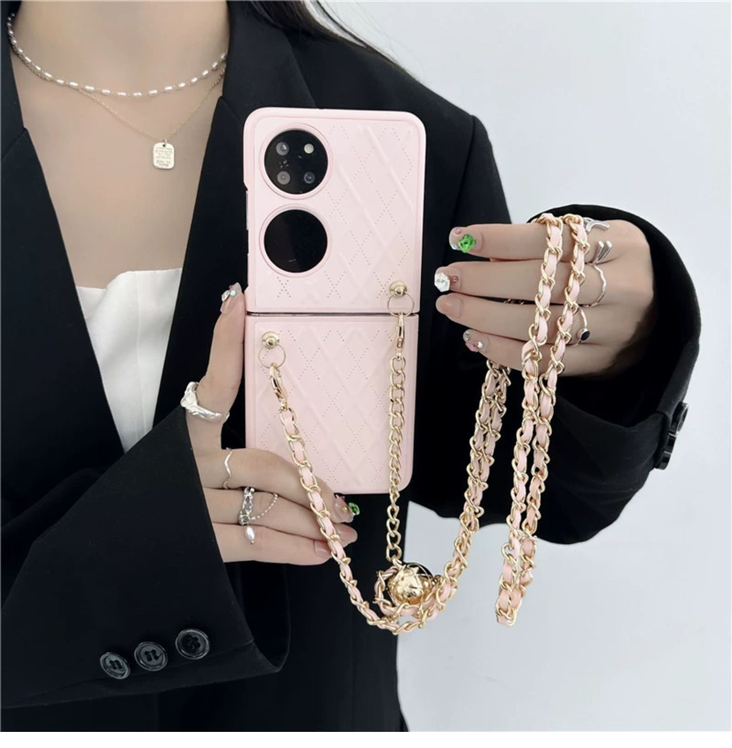 適用華為pockets手機殼折疊屏斜挎長背帶掛繩寶盒小翻蓋時尚小香風高檔奢華皮質p50pocket卡包零錢包可愛氣質