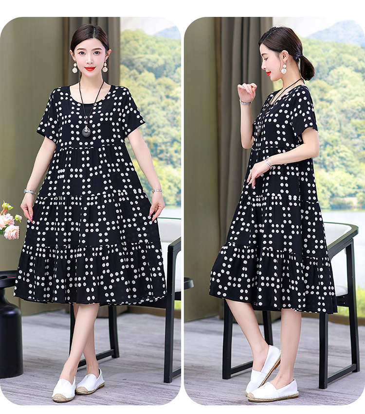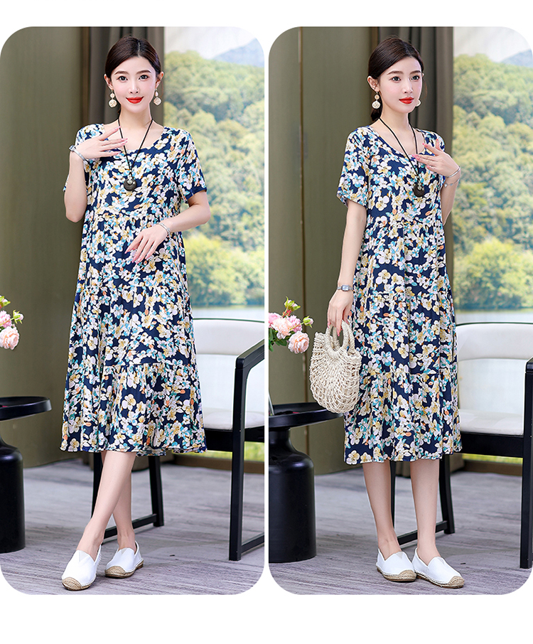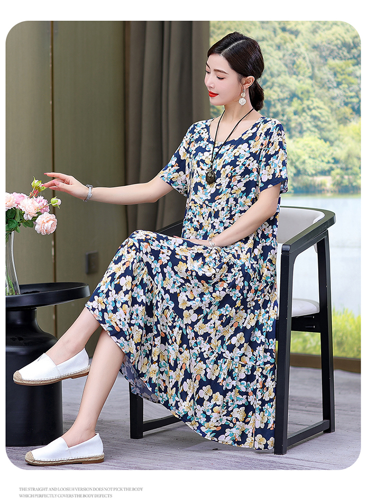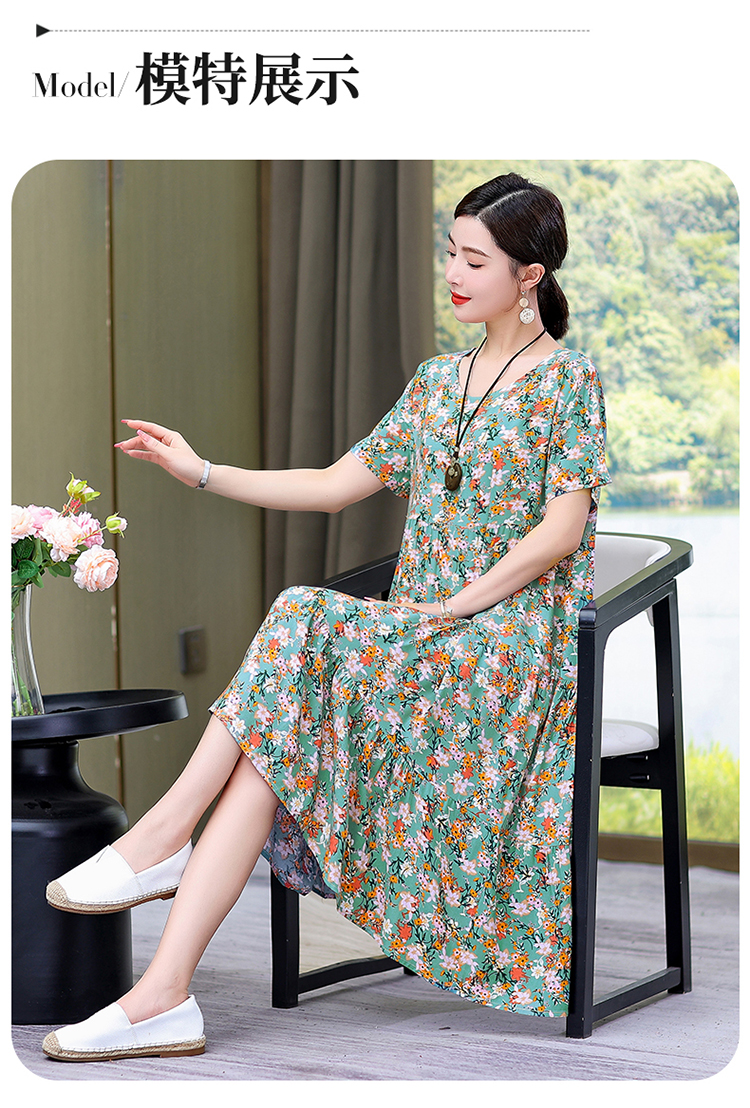 2023新款氣質媽媽棉綢連衣裙女夏季時尚大碼中老年人造棉印花裙子