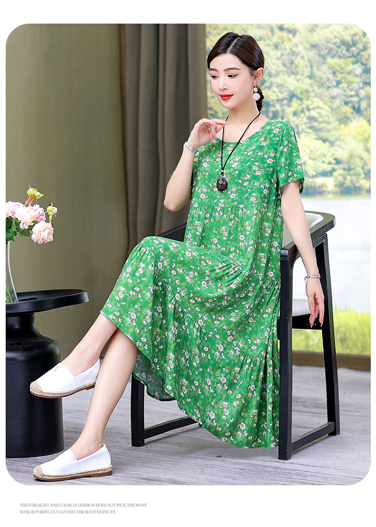 2023新款夏天高級感棉綢連衣裙年輕媽媽大碼睡裙人造棉碎花沙灘裙