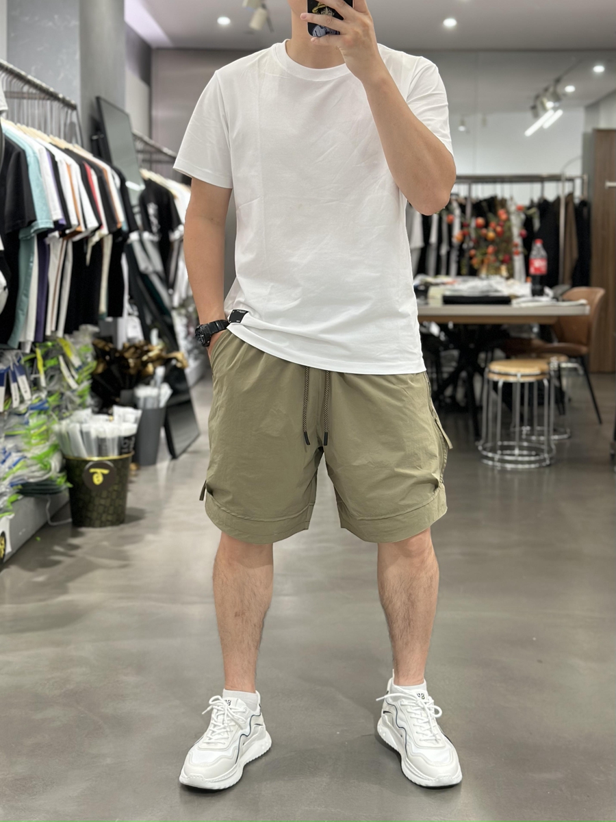 免燙純色薄款短褲男生夏季寬松休閑運動五分褲直筒潮牌機能工裝褲