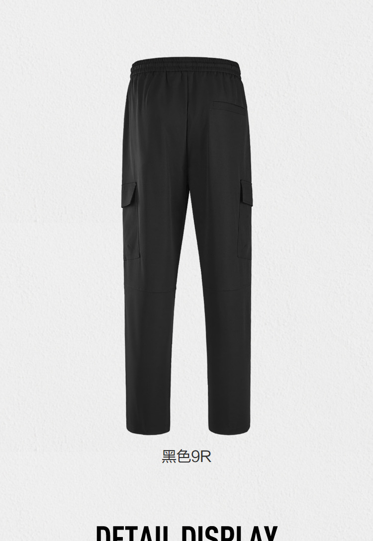 HLA海瀾之家直筒抽繩休閑褲秋季新款松緊腰通勤耐磨黑色褲子男士