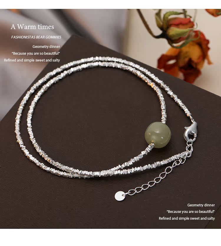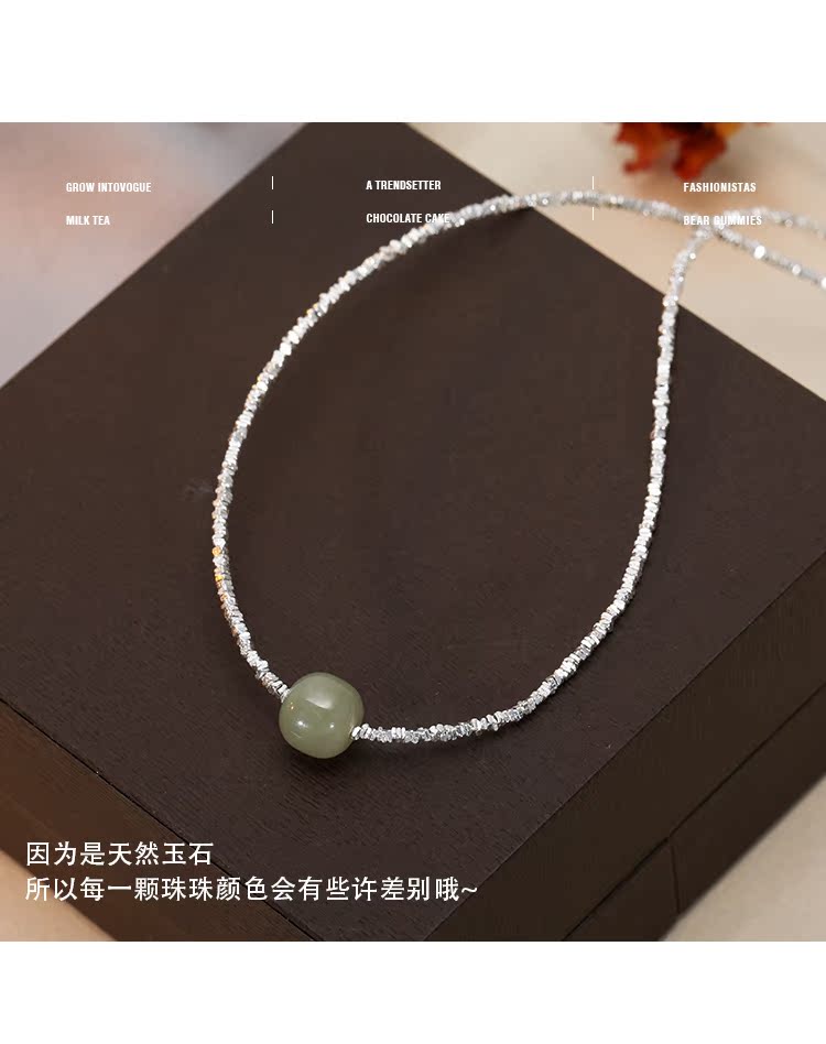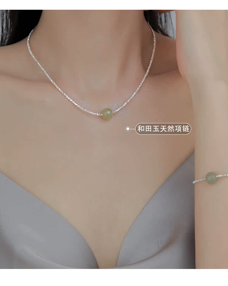 初影 925純銀輕奢精致和田玉碎銀項鏈純欲溫柔國風高級感鎖骨鏈