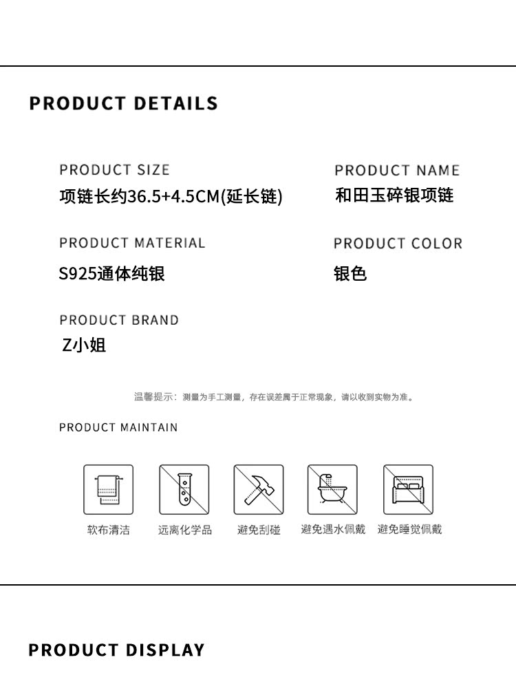 Z小姐 和田玉碎銀 925純銀 項鏈 長約36.5+4.5cm 重約7.33克