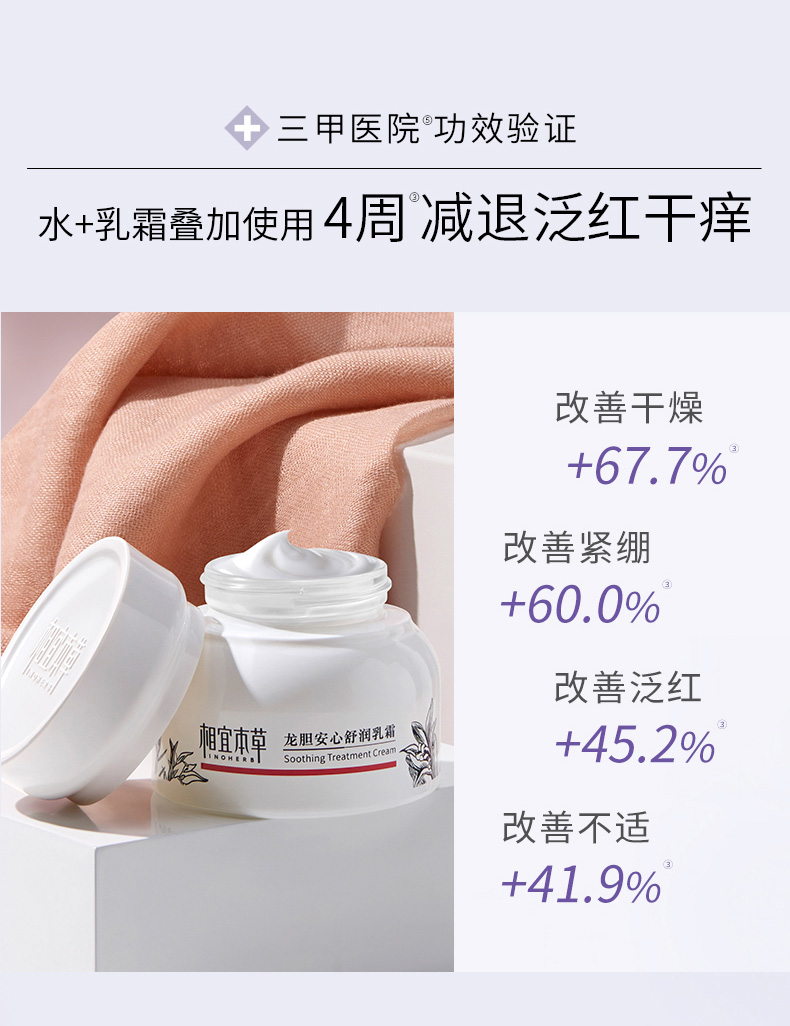 相宜本草龍膽安心舒潤乳霜保濕滋潤面霜補水舒緩修護改善肌膚男女