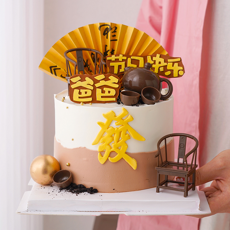 網紅父親節中國風蛋糕裝飾品茶壺椅子擺件蘭亭序扇子爸爸生日插件