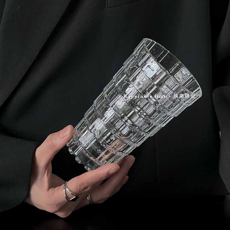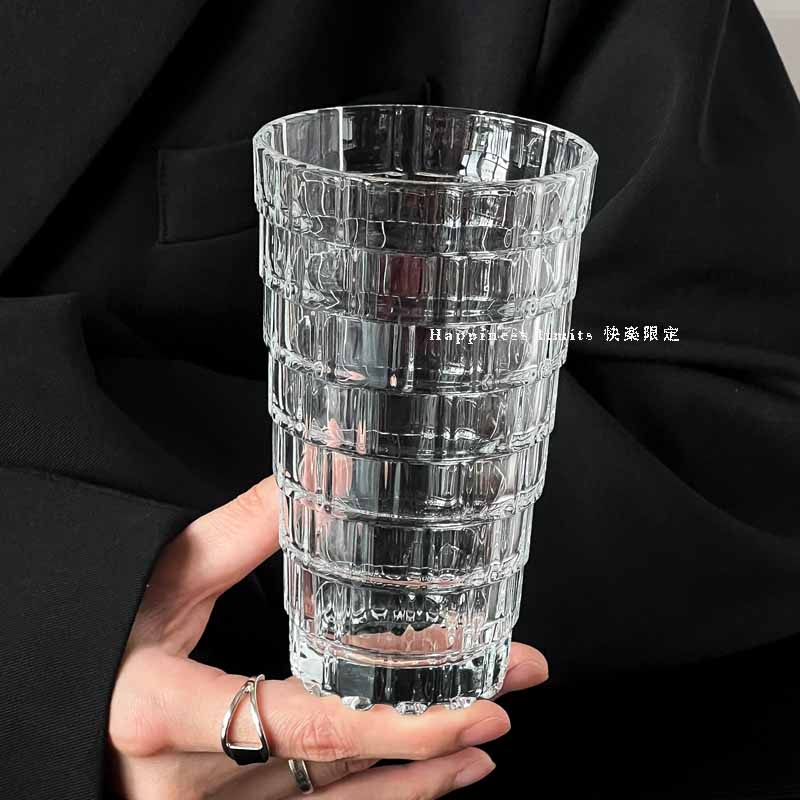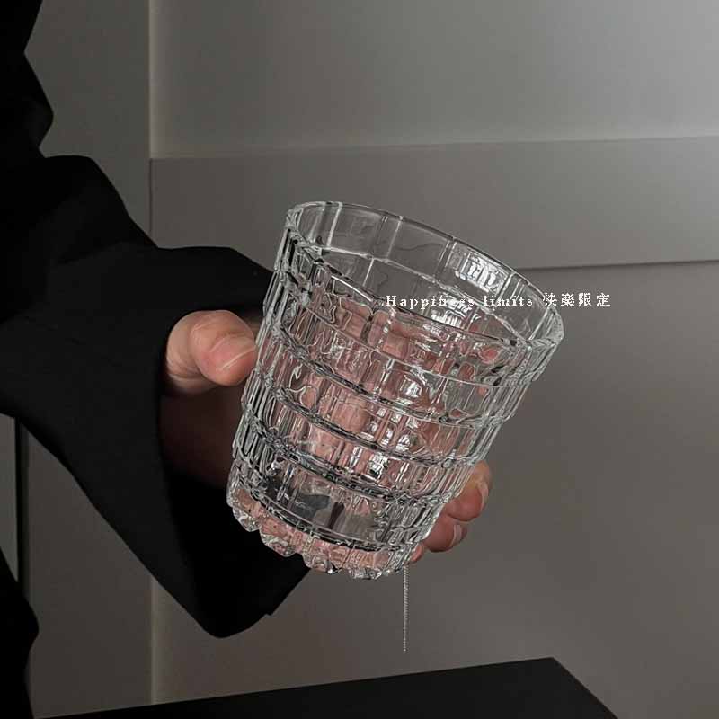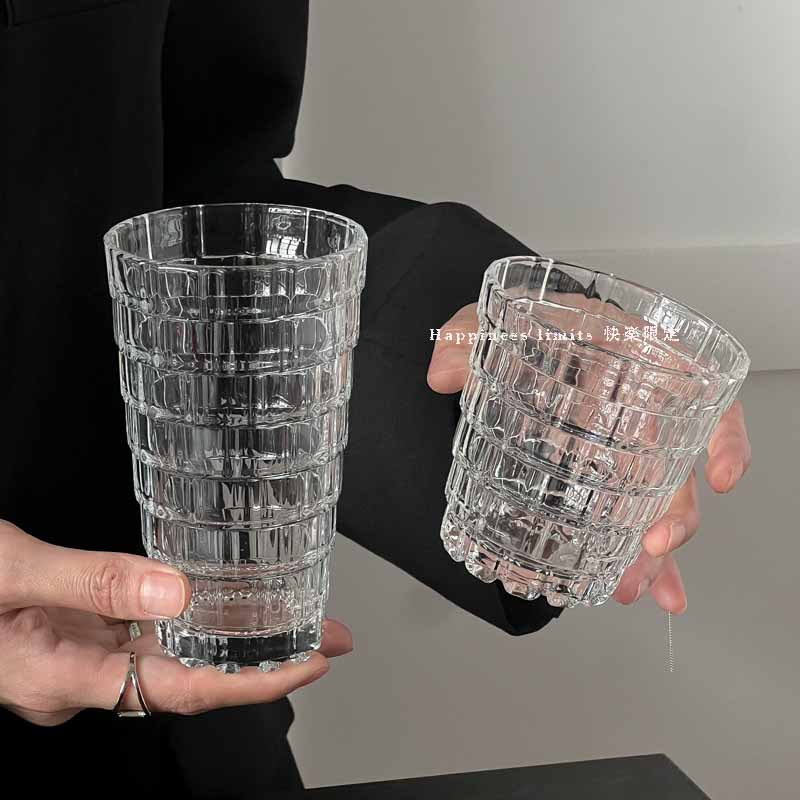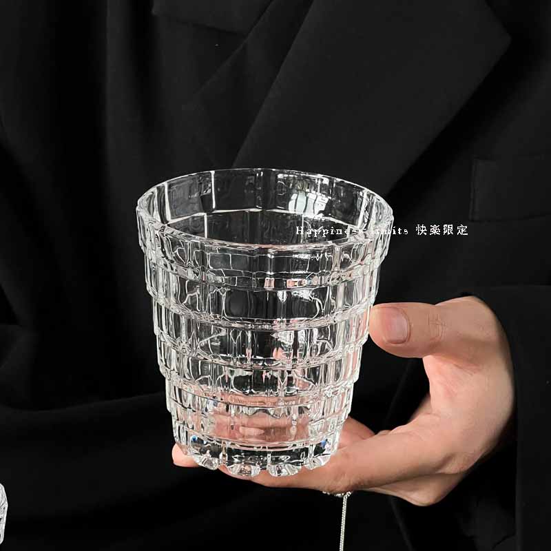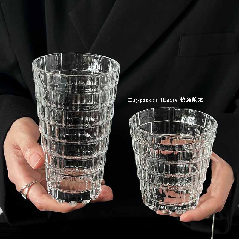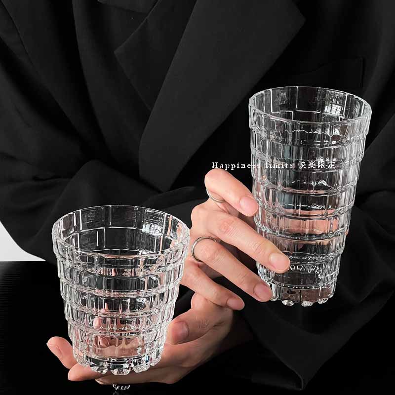 新款小眾ins風疊疊杯刻花水晶玻璃水杯高顏值女浮雕冷飲杯果汁杯