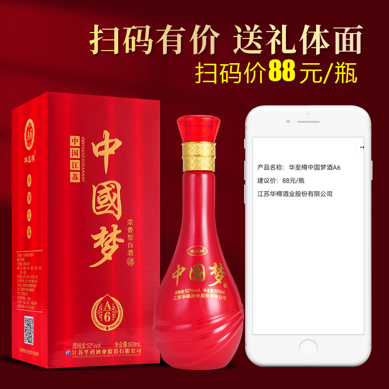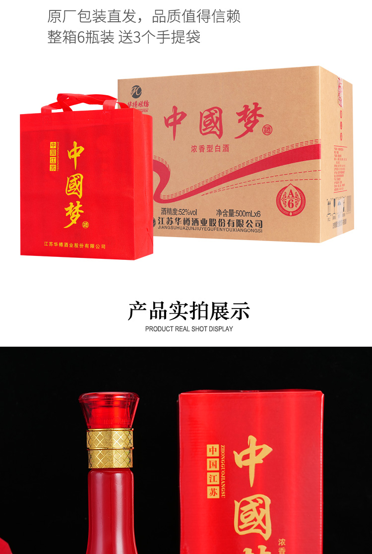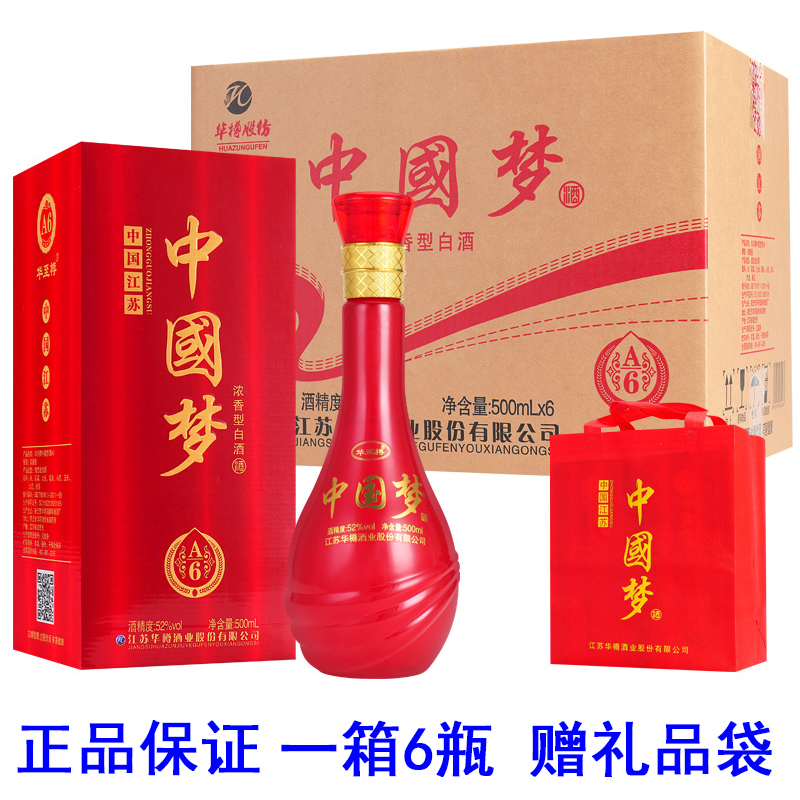 中國夢52度白酒紅瓶婚宴濃香型酒水一整箱6瓶禮盒裝特價純糧食酒