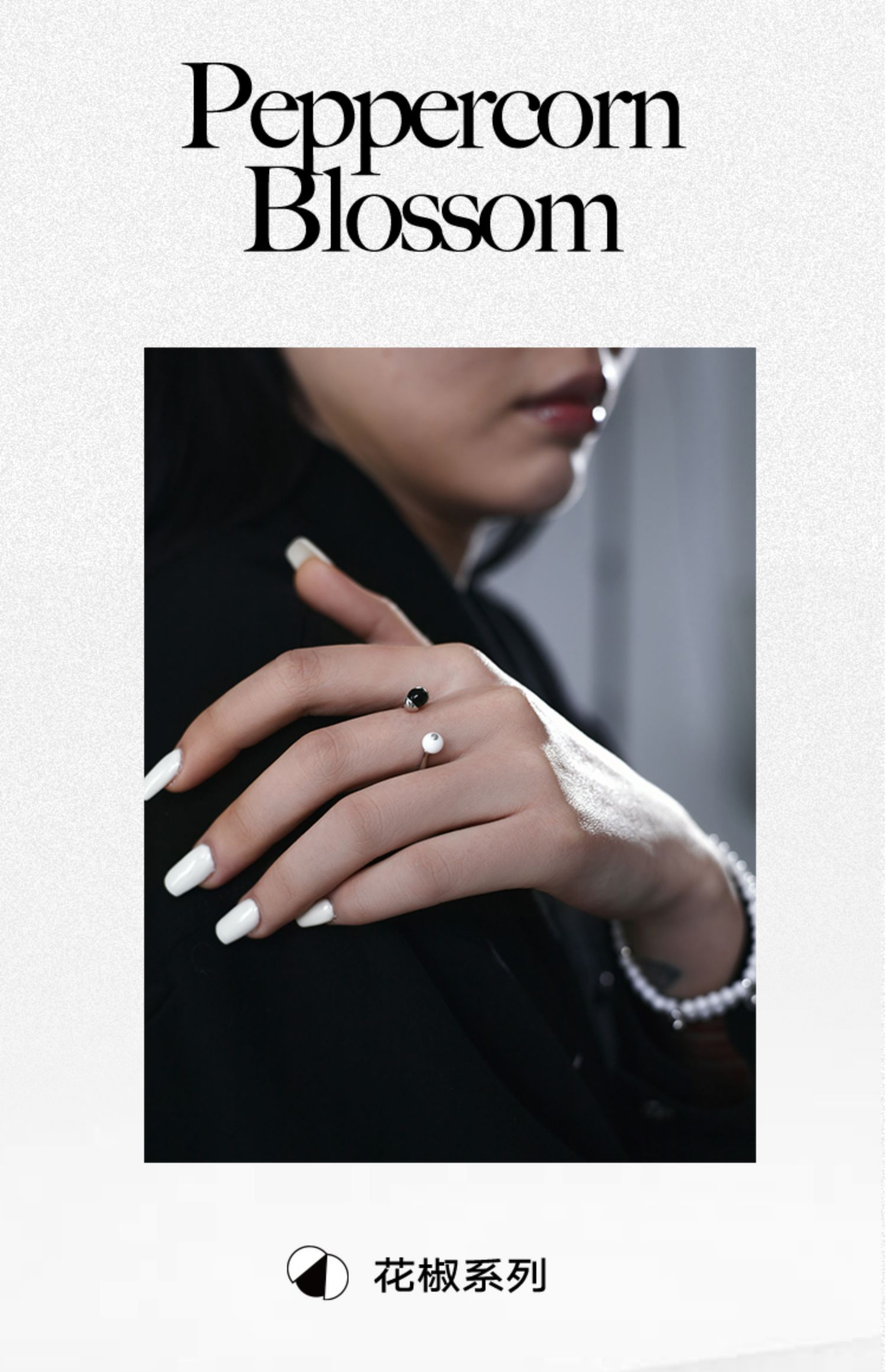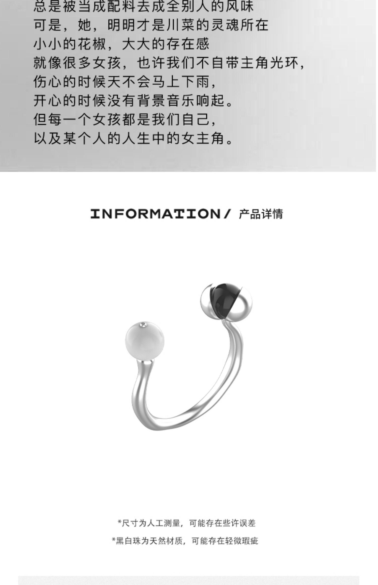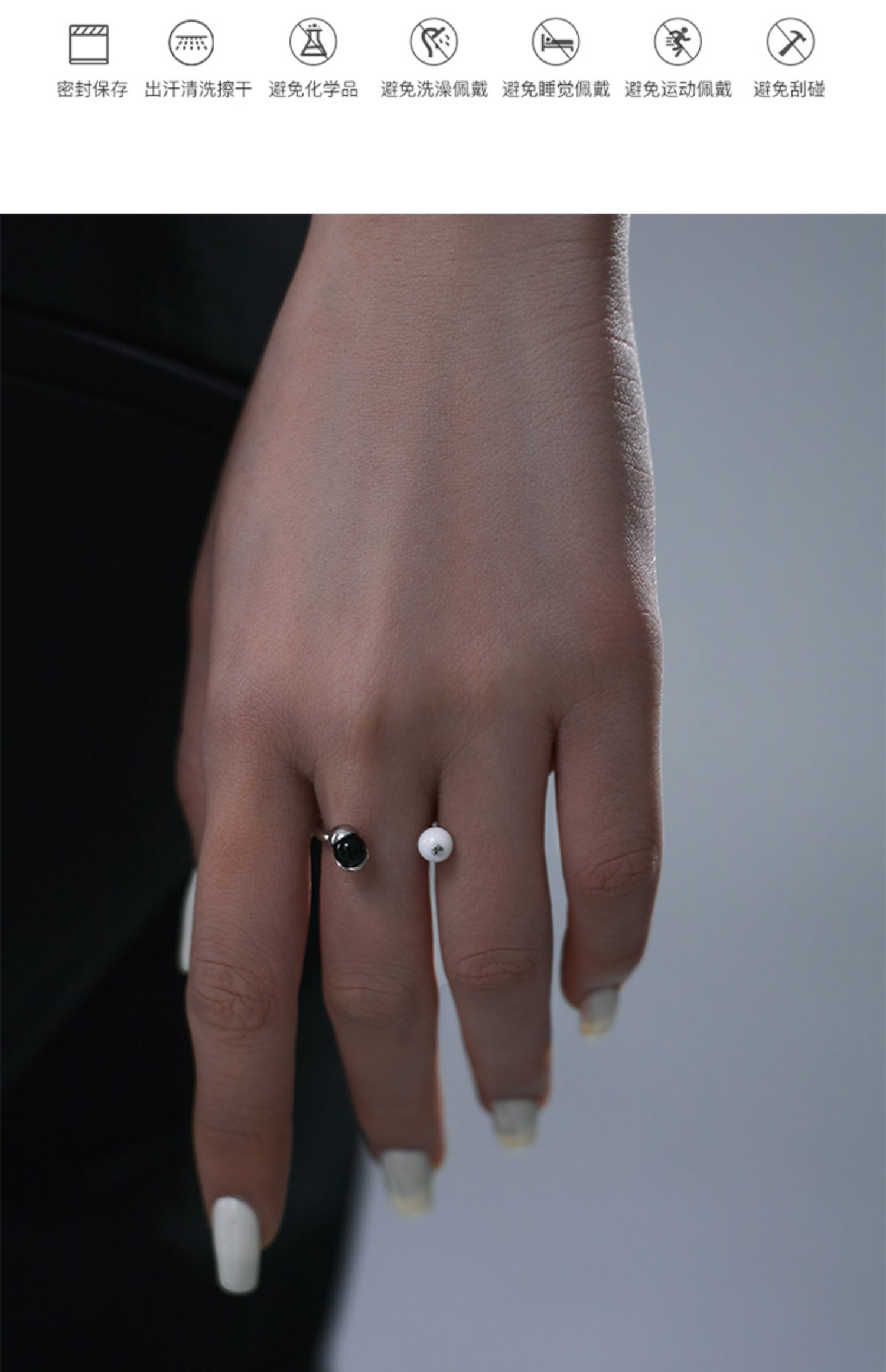 ZHAO ACAP黑瑪瑙瓷白珠花椒開口戒指精致氣質簡約小眾原創設計女