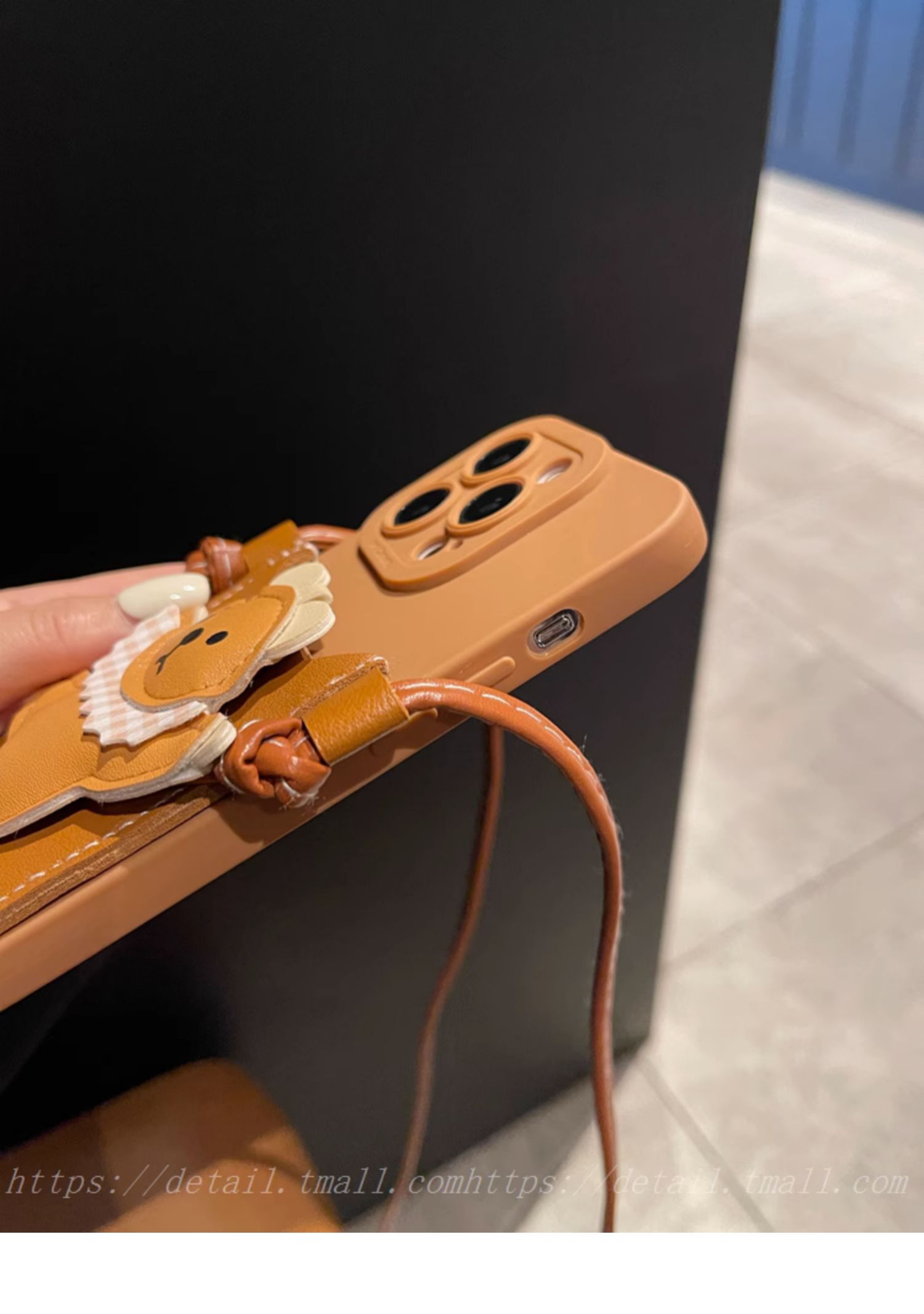 奶茶色獅子支架手繩適用iPhone15pro手機殼蘋果14promax掛繩13/14掛鏈12斜挎13pro背帶11腕帶xs/xr女13promax