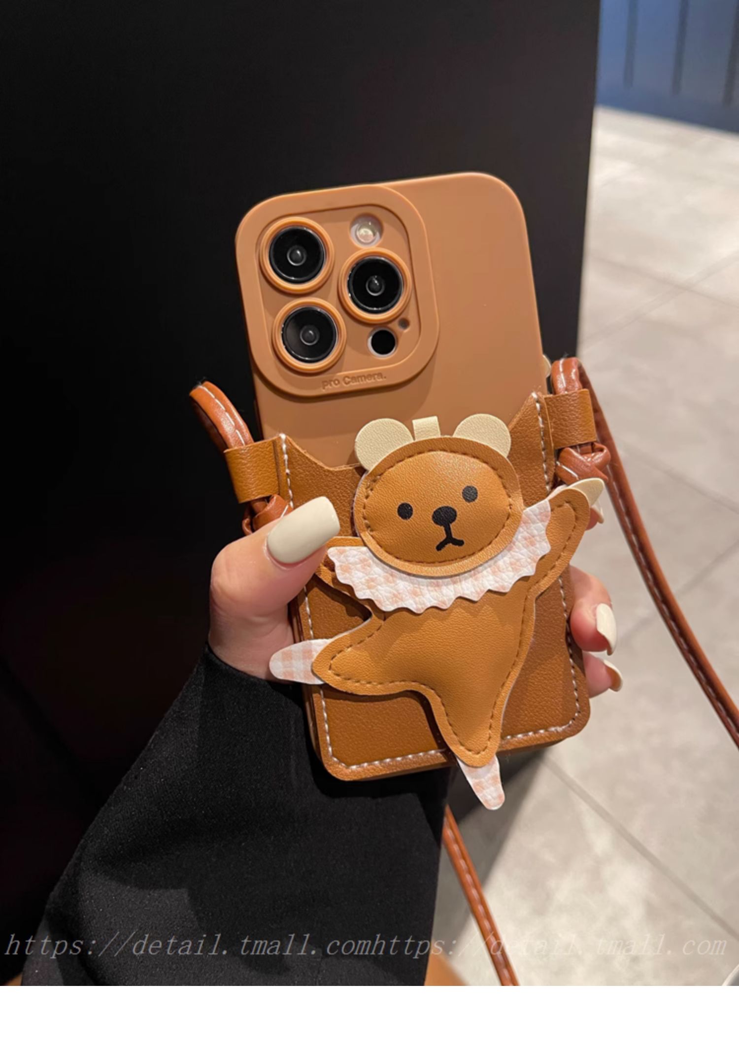 焦糖色跳舞小熊適用蘋果14/15pro斜挎手機殼iPhone14promax掛繩13背帶12卡包11掛鏈xs/xr女14pro新款13promax