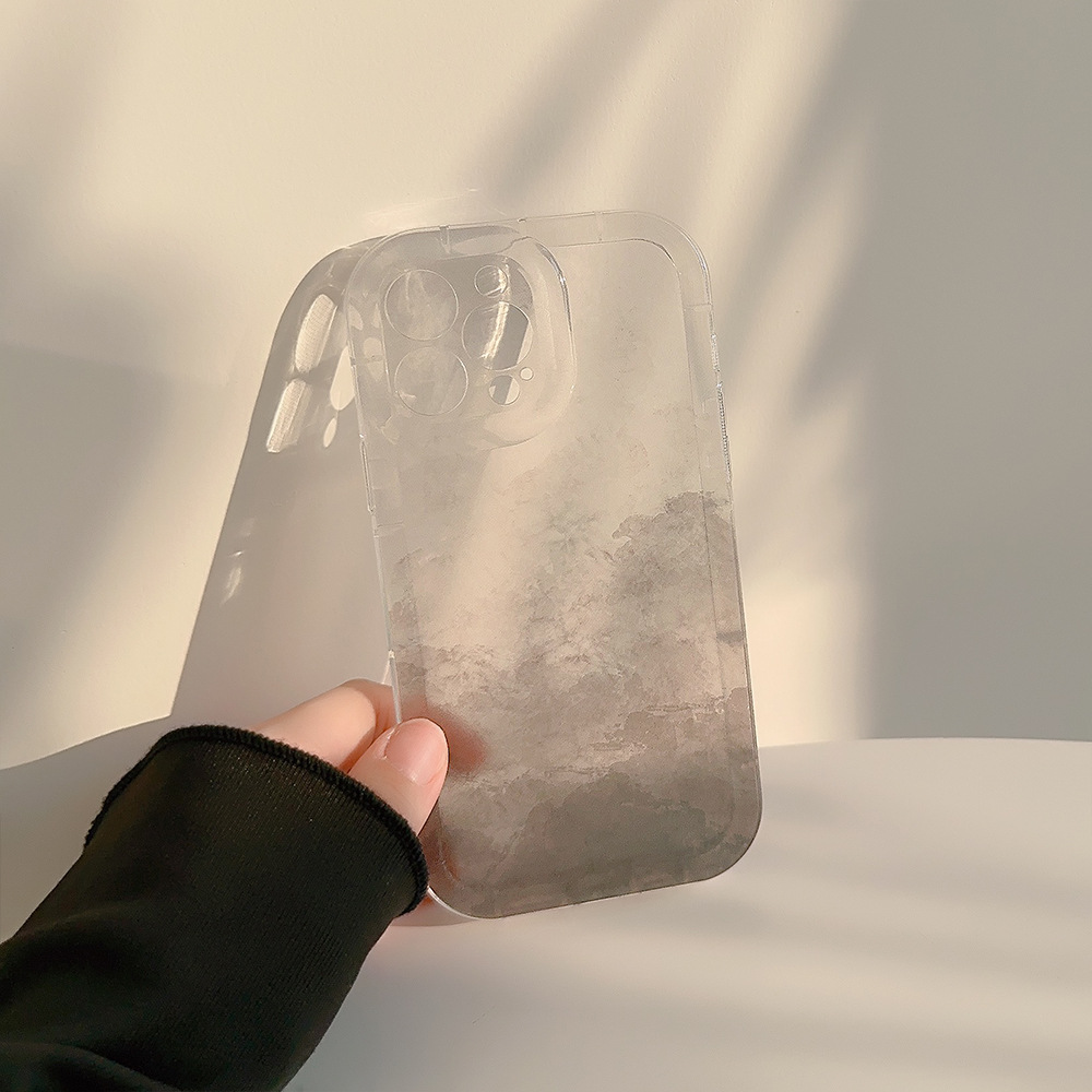 桔子貓極簡ins水墨山丘14pro max手機殼iphone13冷淡風11透明14硅膠套12