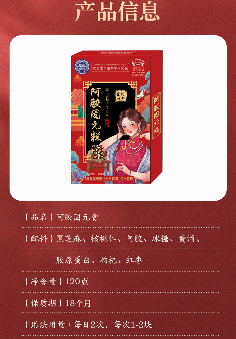 Q3養生堂中藥科學研究院阿膠糕即食女士型山東東阿120g固元糕