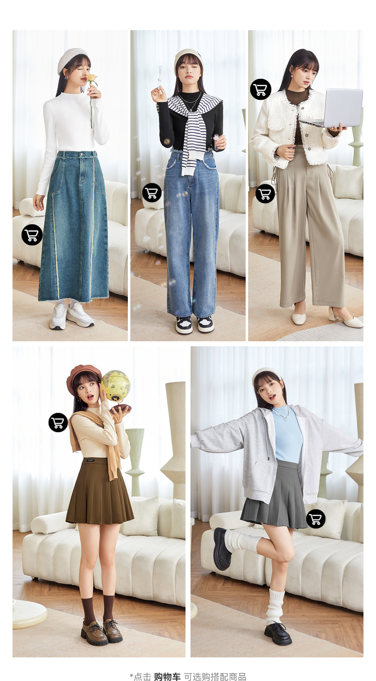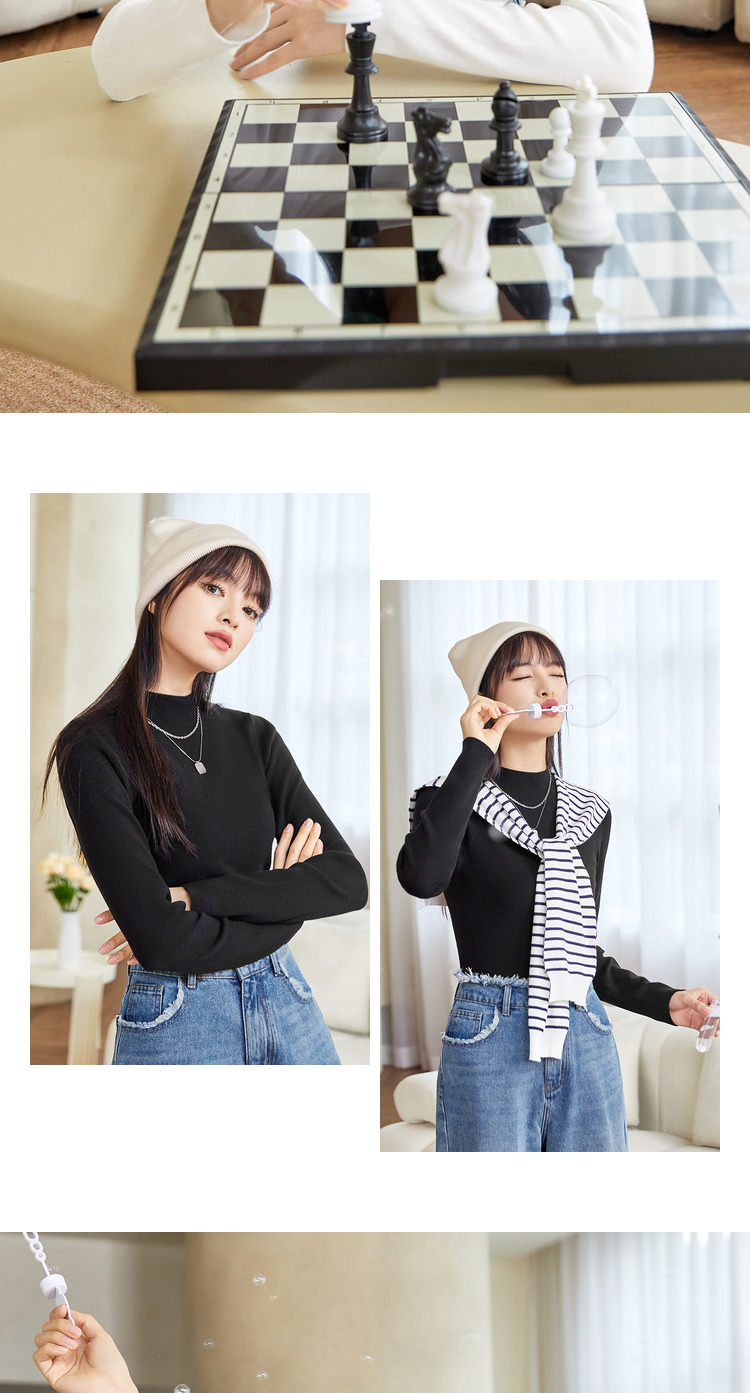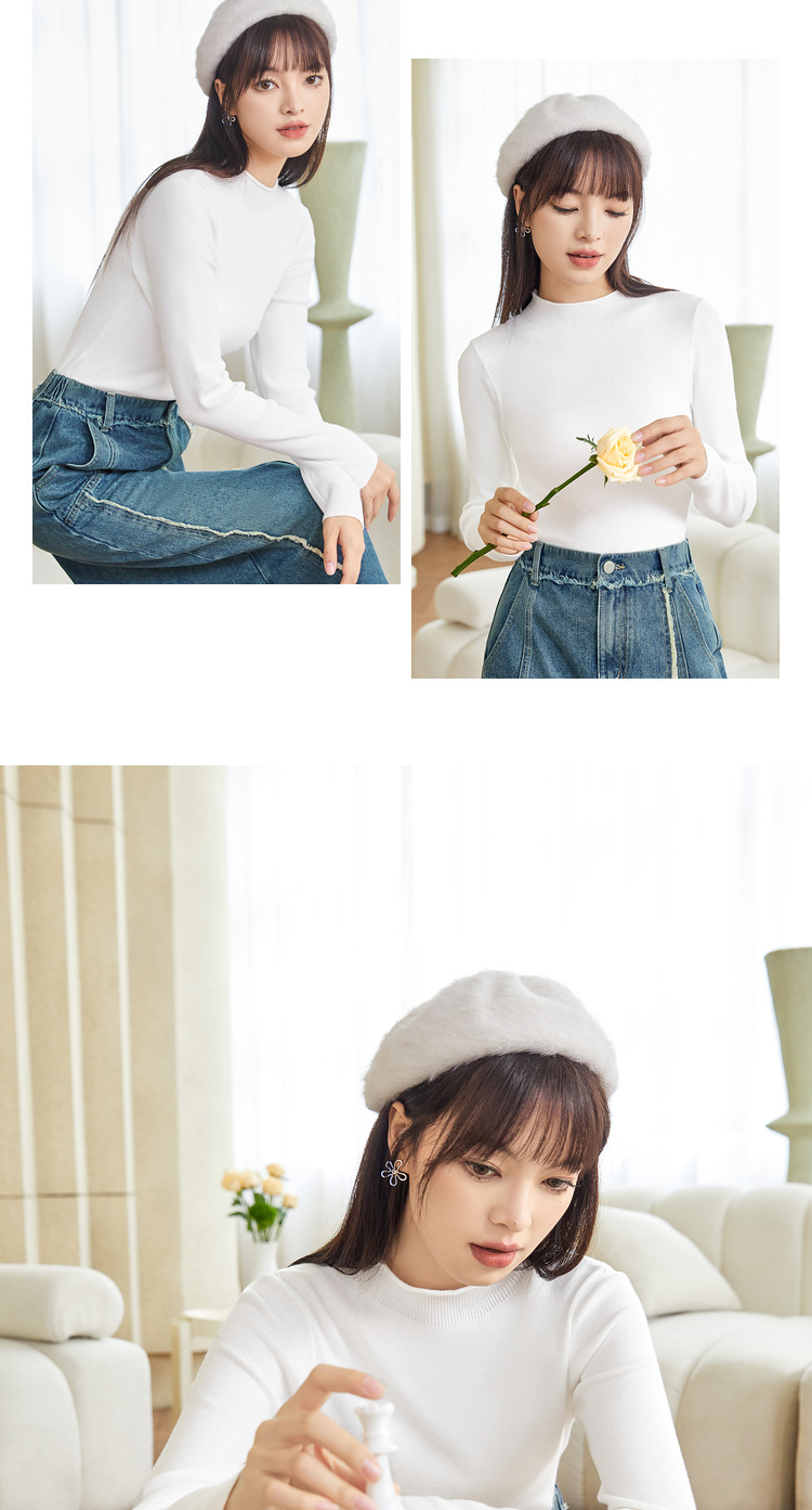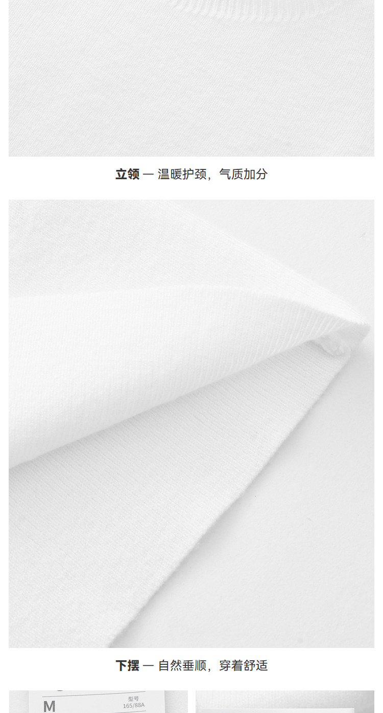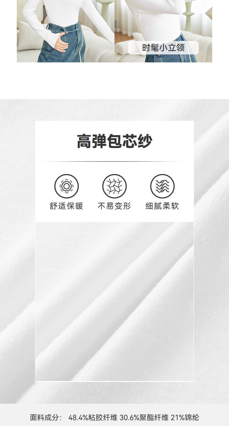 三福打底毛衫2023秋冬立領木耳邊保暖包芯紗修身T恤針織上衣女裝