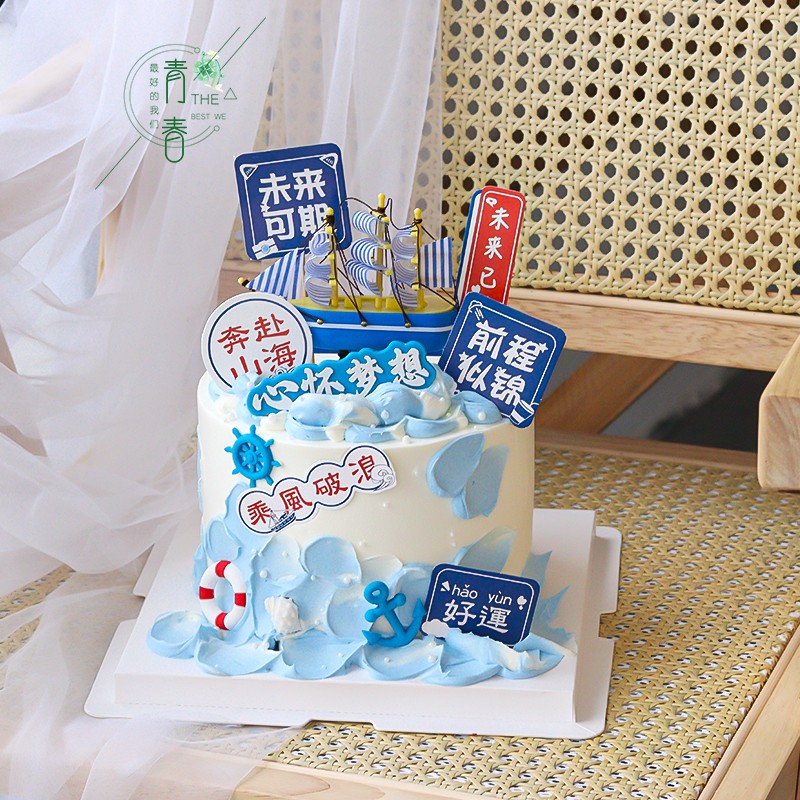 畢業季帆船蛋糕裝飾擺件乘風破浪未來可期一帆風順前程似錦插件牌