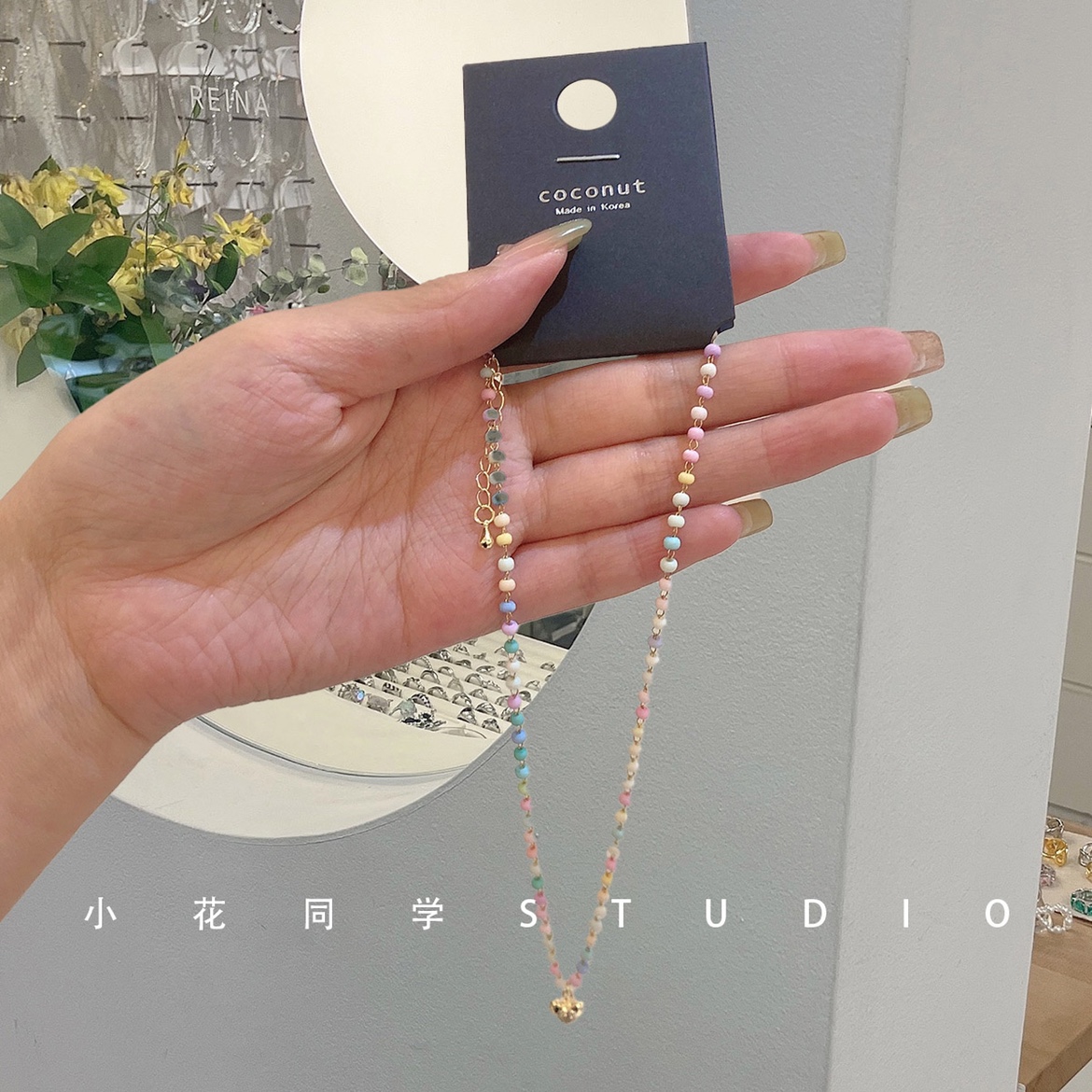 韓國飾品2023新款精致爆款少女感彩色糖果色珍珠項鏈頸鏈鎖骨鏈