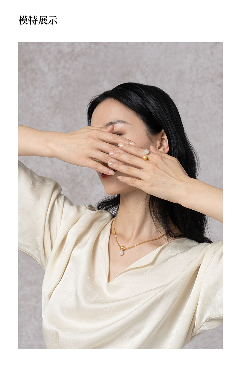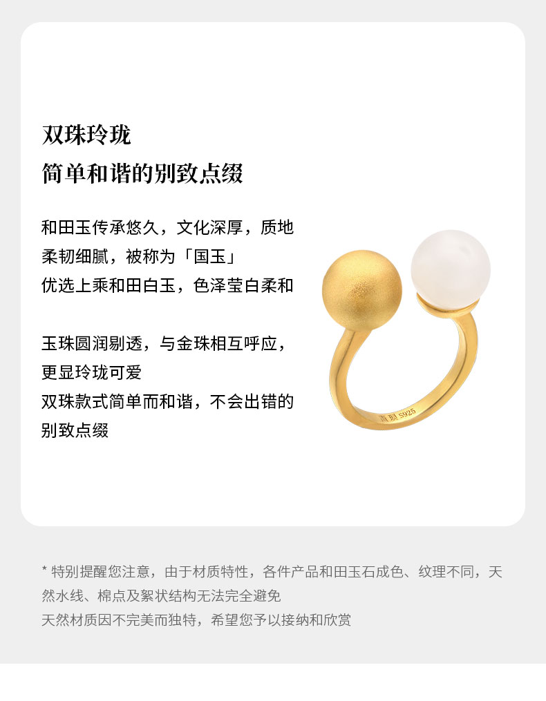 青現知白系列白玉金珠戒指指環飾品韓版簡約個性小眾設計2023爆款
