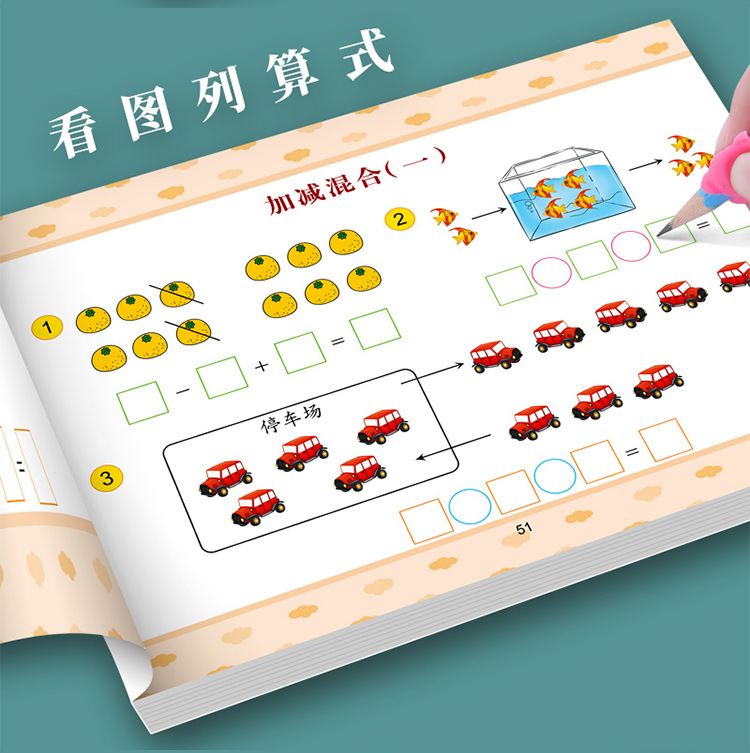 看圖列算式一年級計算題人教版數學思維強化專項訓練10/20/100以內加減法練習冊應用題能力測試題卡幼兒園天天練3-6歲升學一日一練