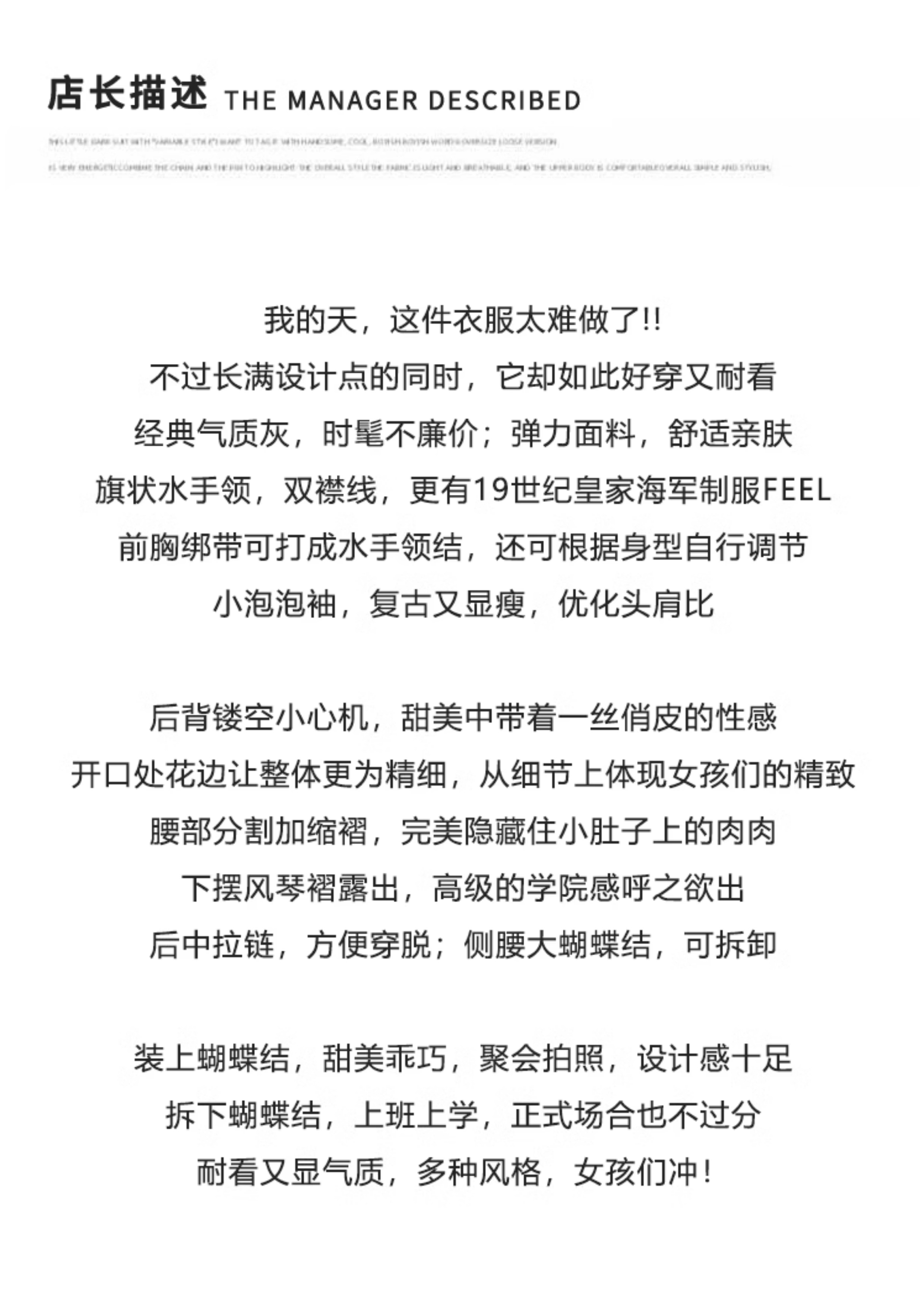 18¥ CZ0001 xqHXdAdtrZh¥ https://m.tb.cn/h.5UaPYca SagiDolls少女斗志遮肚顯瘦!灰色水手領甜酷蝴蝶結收腰露背連衣裙 --------------------- SagiDolls少女斗志遮肚顯瘦!灰色水手領甜酷蝴蝶結收腰露背連衣裙 --------------------- 【原售價】329元 【優惠券】10元 【券后價】319元。