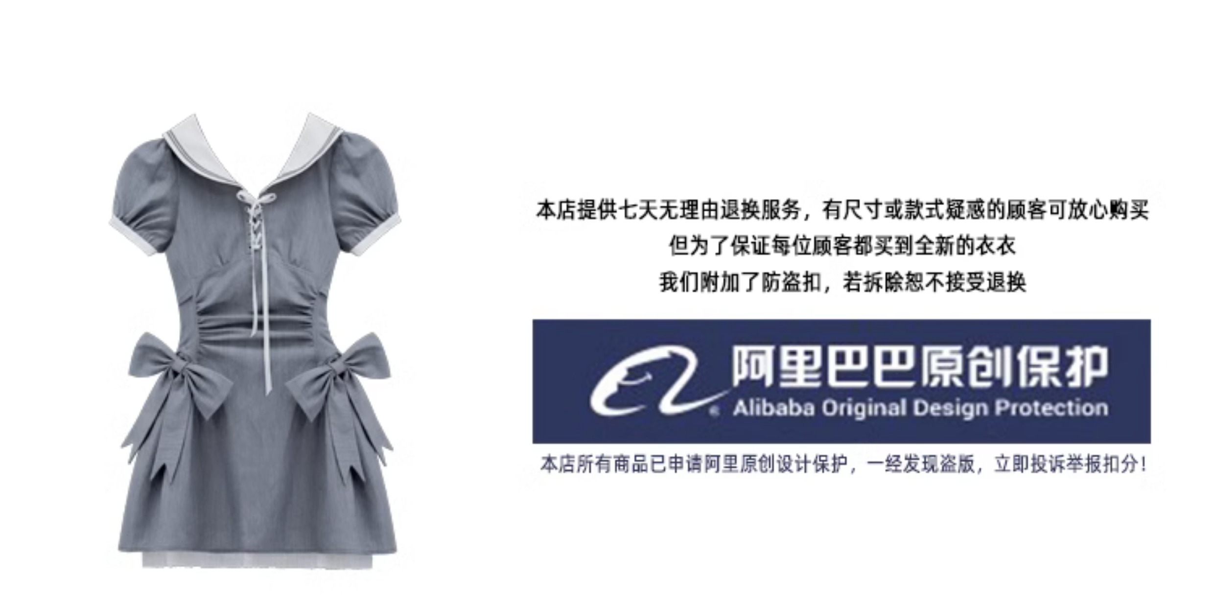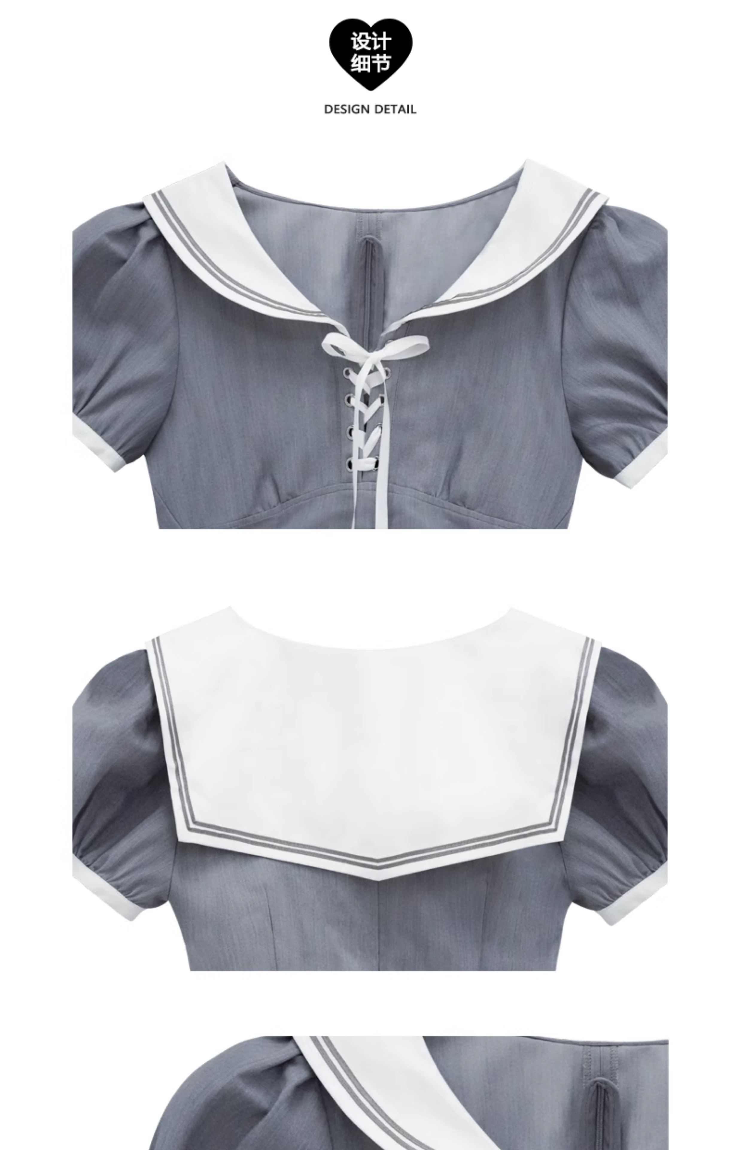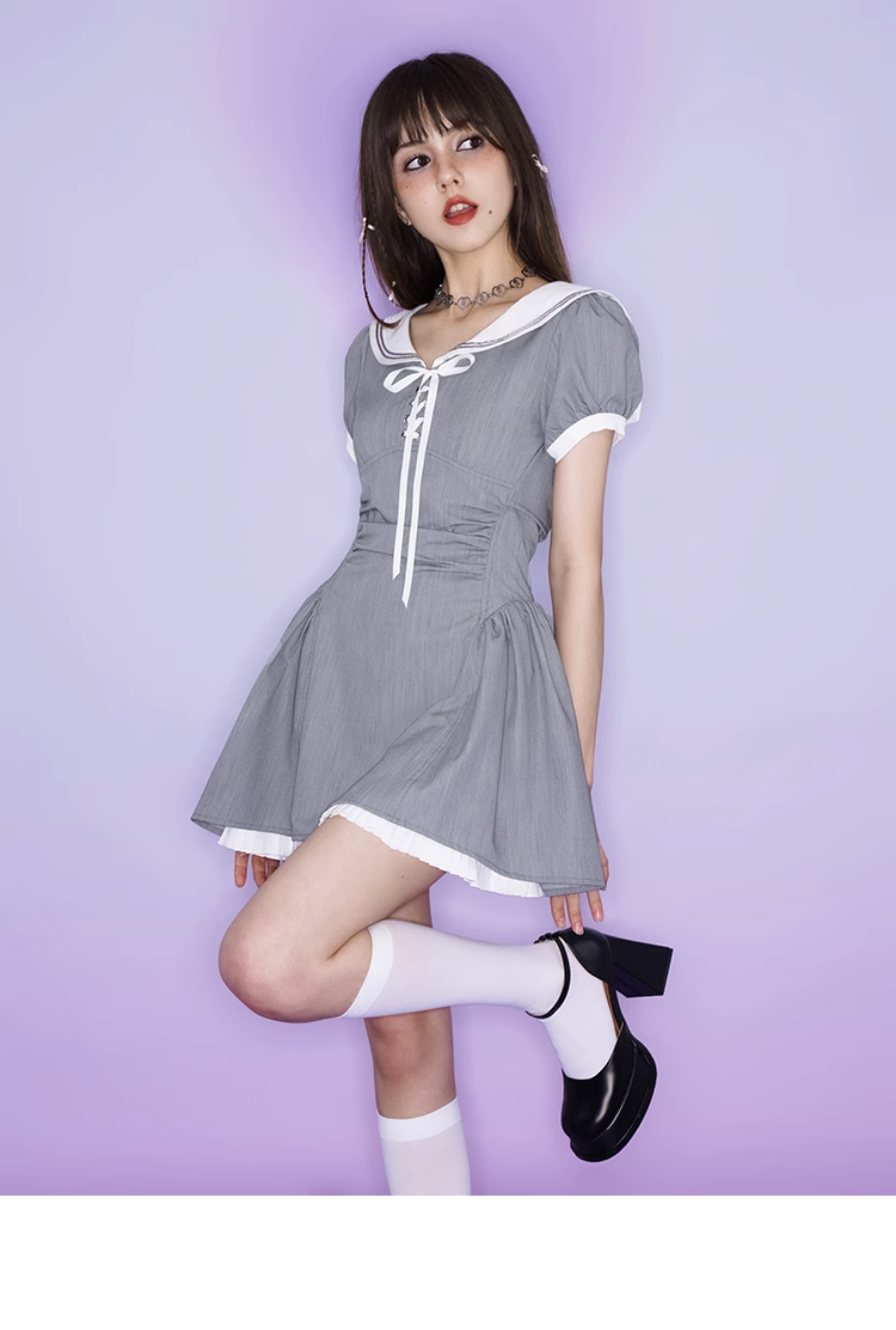 SagiDolls少女斗志遮肚顯瘦!灰色水手領甜酷蝴蝶結收腰露背連衣裙