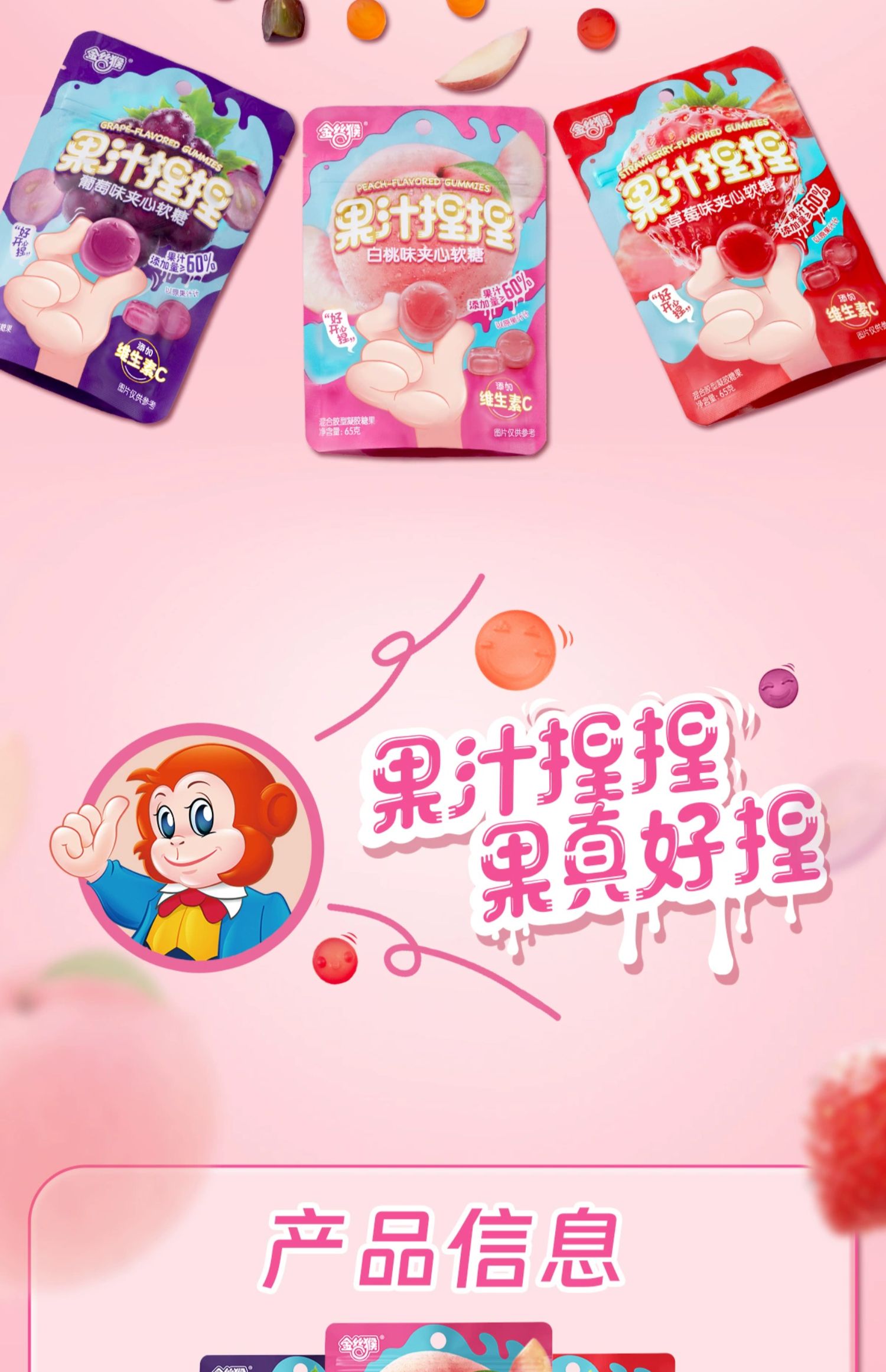 金絲猴果汁捏捏65g*9袋剝皮軟糖水果VC爆漿qq橡皮糖喜糖兒童零食