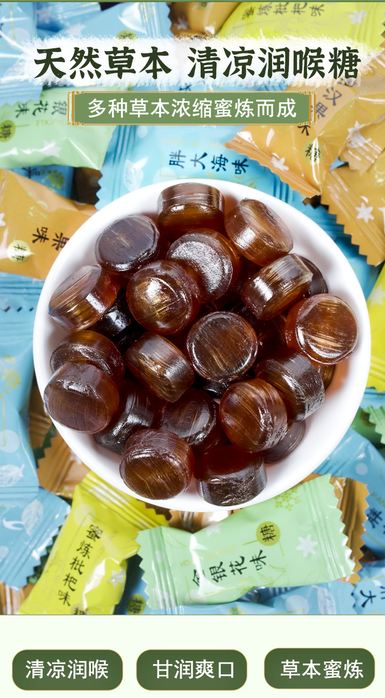 金銀花胖大海枇杷羅漢果潤喉糖清涼護嗓清新口氣薄荷糖果零食批發