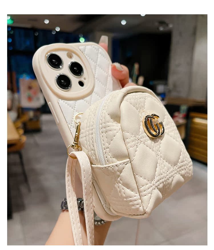 小香風米奇卡包適用蘋果15Promax手機殼iPhone14菱格皮質13Pro小眾12高級感11斜跨背帶式X/Xsmax軟全包8Plus