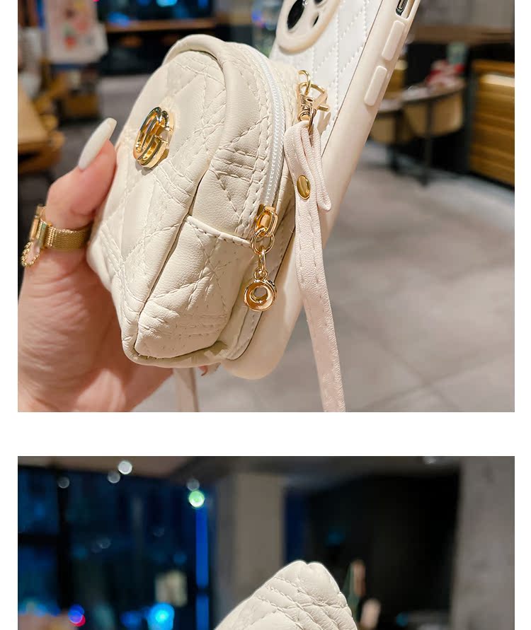菱格多功能零錢卡包適用蘋果14手機殼iPhone15Promax斜跨背帶式13Pro小香風12掛繩11皮質全包Xsmax女7/8Plus