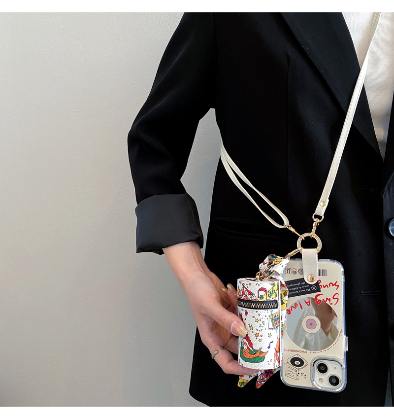 蘋果14手機殼掛繩斜挎可背適用iphone15promax四角開孔硅膠13情侶涂鴉11pro背帶斜跨零錢包掛件xsmax小眾樂殼