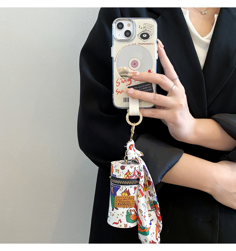 創意CD鏡面彩色口紅包適用iphone14promax手機殼11ins蘋果13可背帶12斜挎掛繩14手拎指環xsmax/xr女7p軟8plus