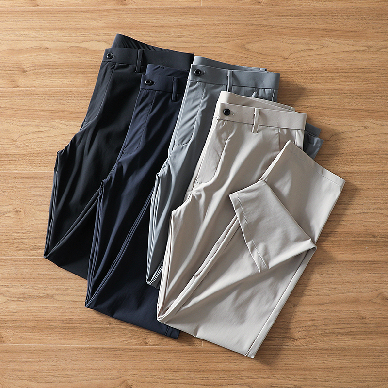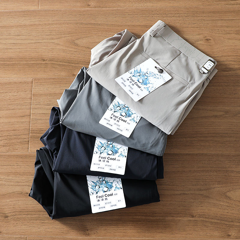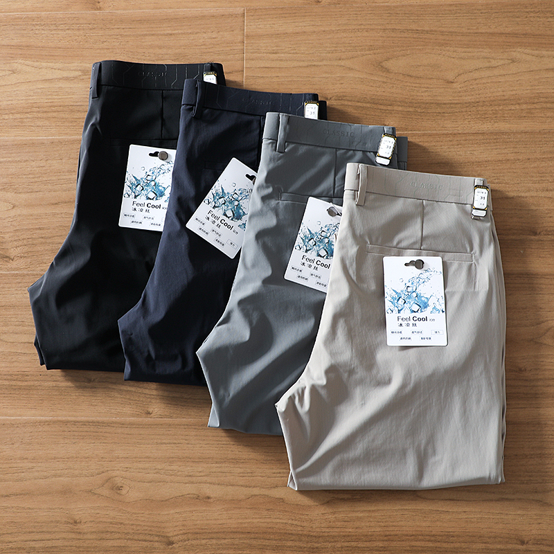 商務品質!科技涼感冰絲面料!免燙抗皺絲滑彈力男士夏季休閑長褲